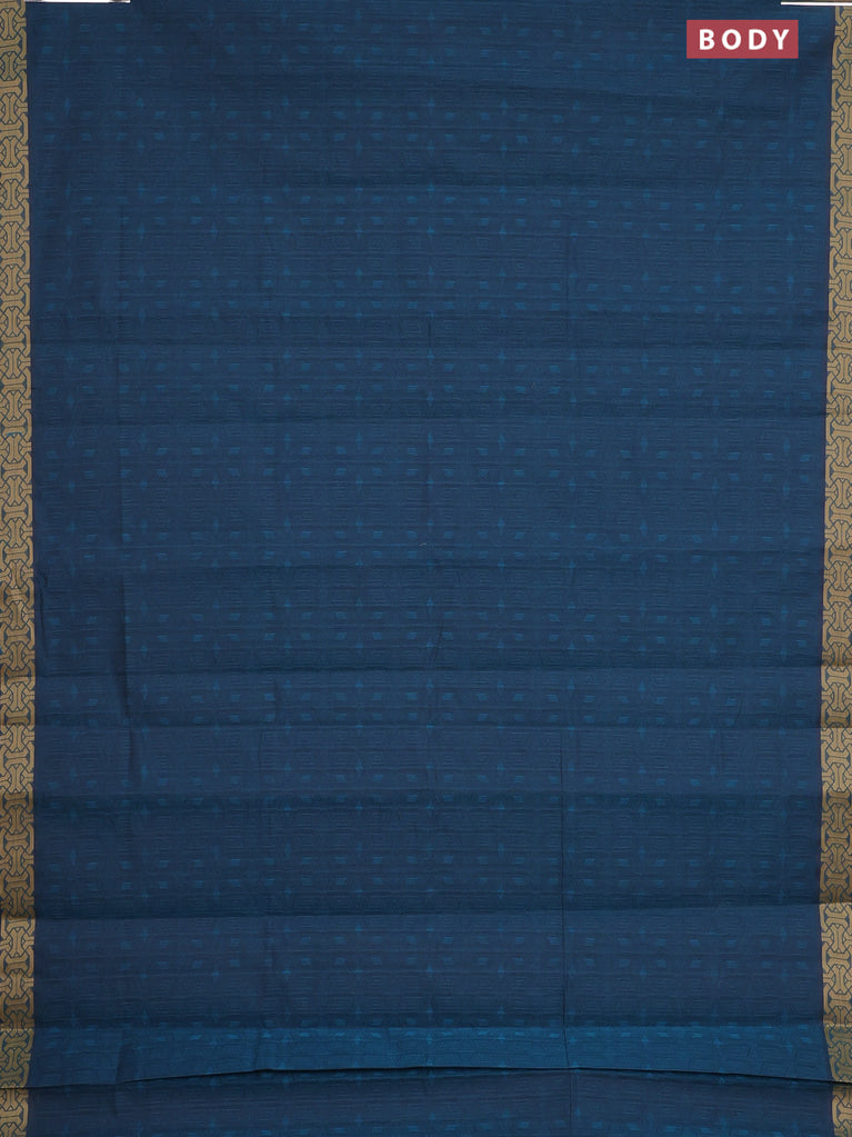 Coimbatore cotton saree peacock blue with allover self emboss and thread woven border