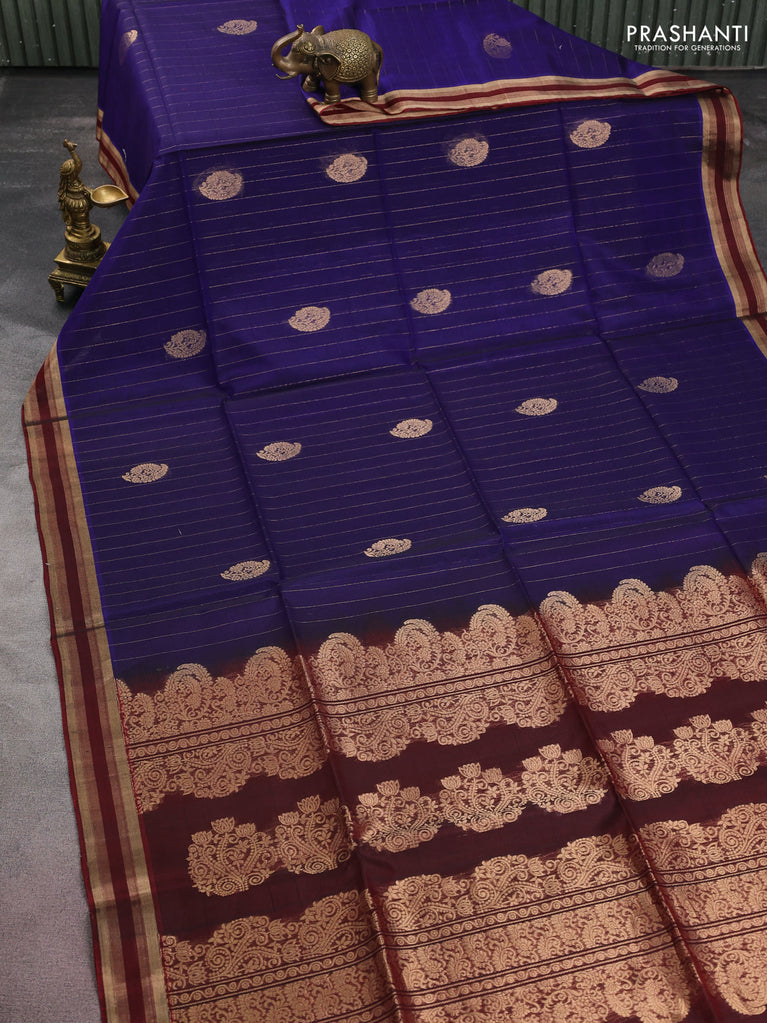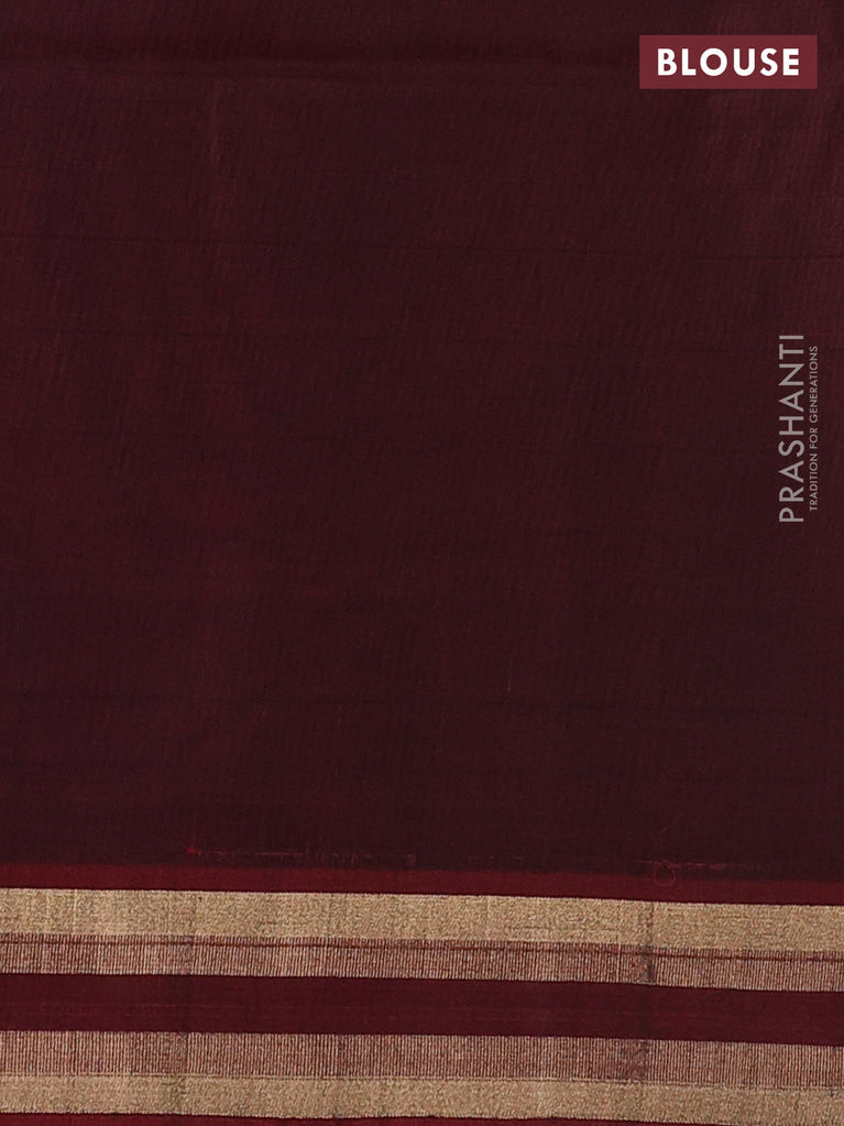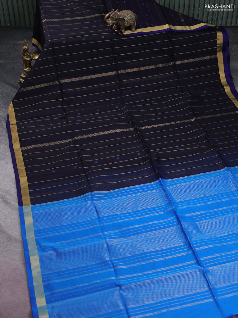 Kora silk cotton saree blue and maroon with allover zari stripes pattern and zari woven border