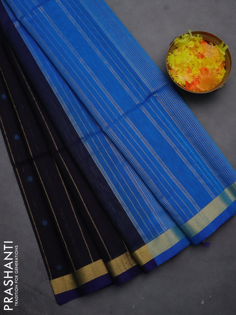 Kora silk cotton saree black and cs blue with allover thread & zari weaves and zari woven border