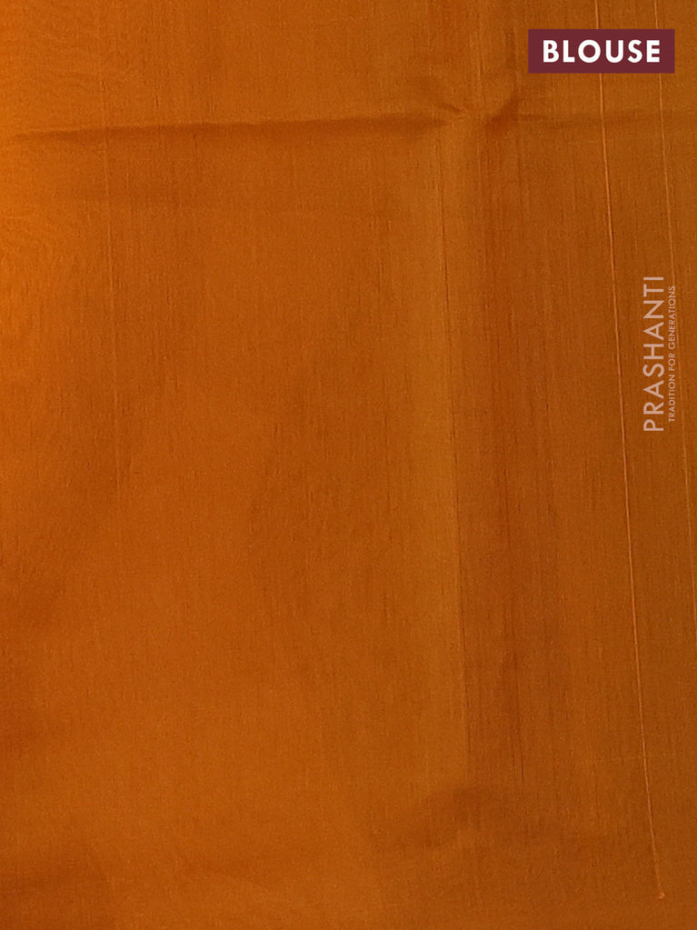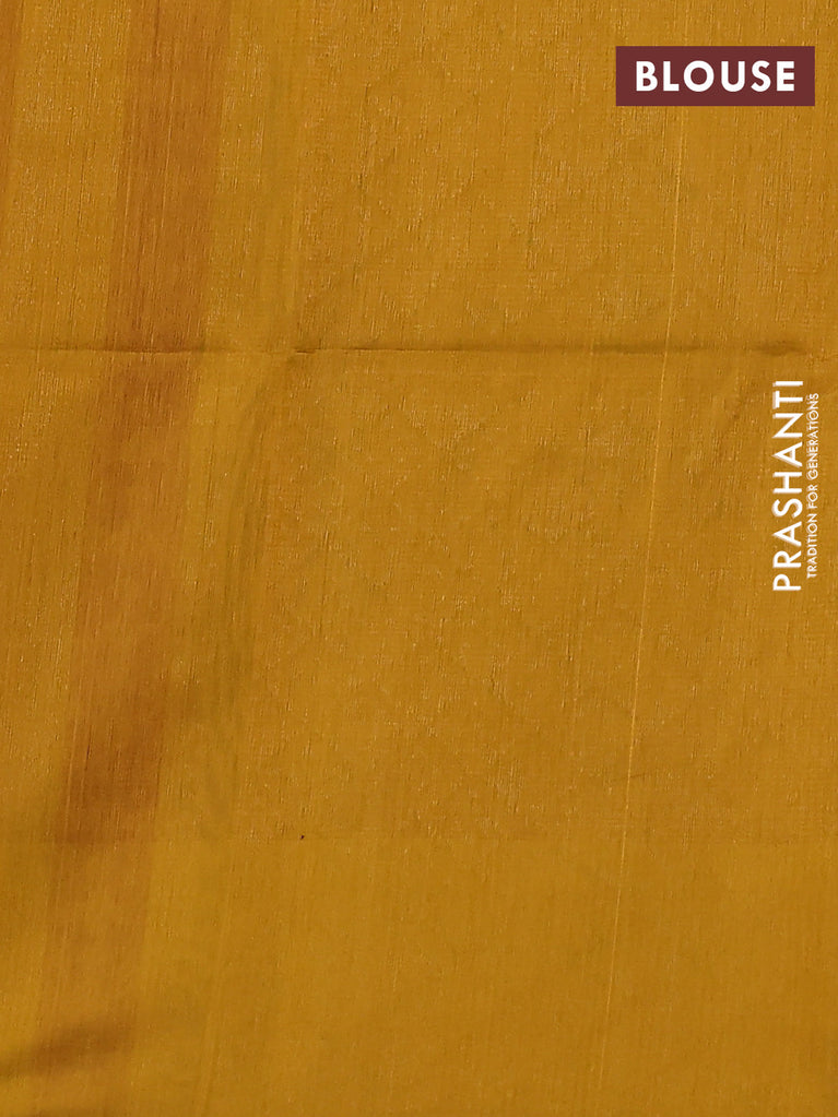 Kora silk cotton saree blue and dark mustard with thread & zari woven leaf buttas and piping border