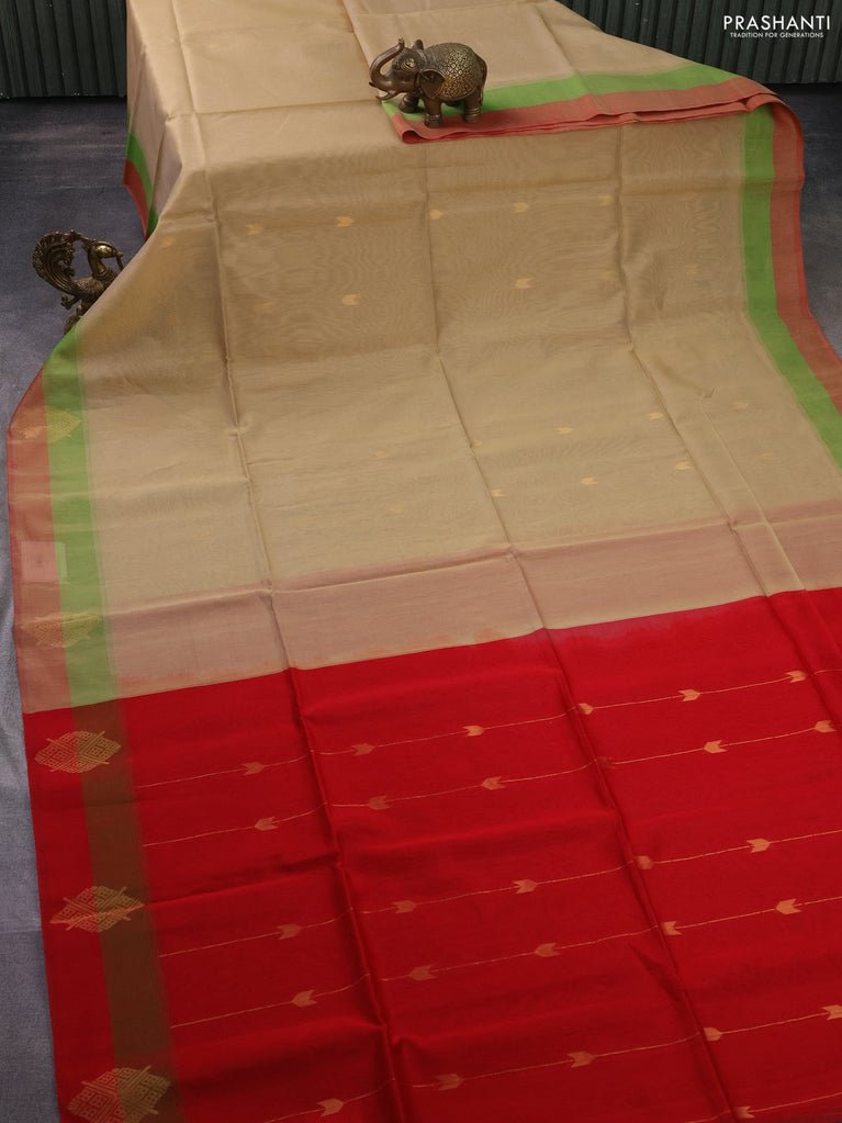 Kora silk cotton saree beige and red with zari woven buttas and zari woven butta border