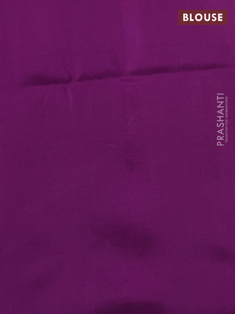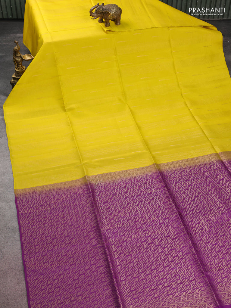 Kanchipuram soft silk saree yellow and purple with allover zari weaves & buttas in borderless style