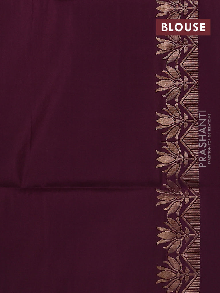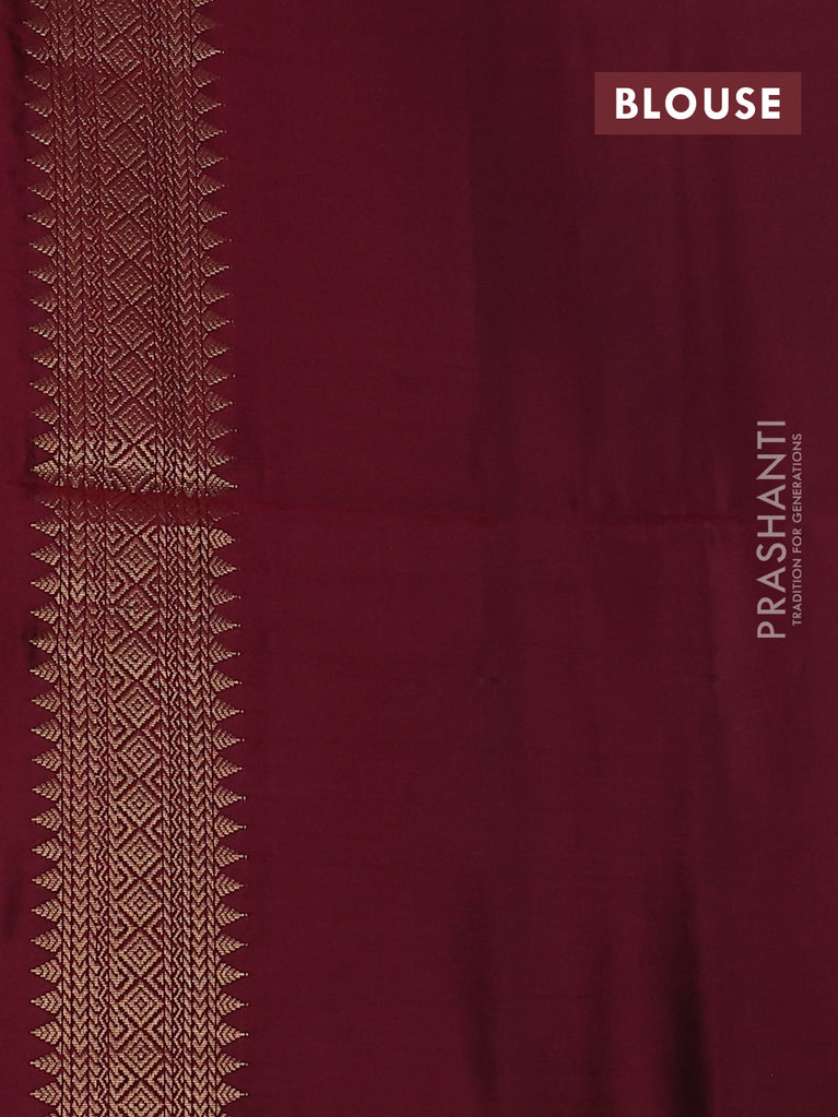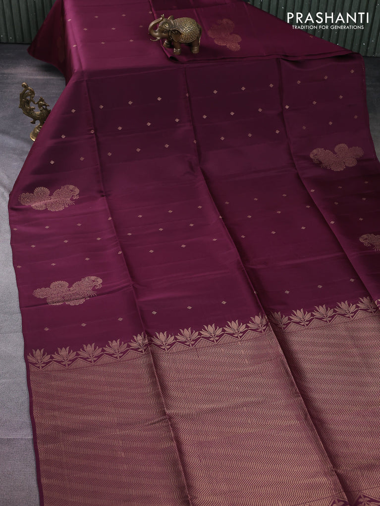 Kanchipuram soft silk saree wine shade with zari woven buttas in borderless style
