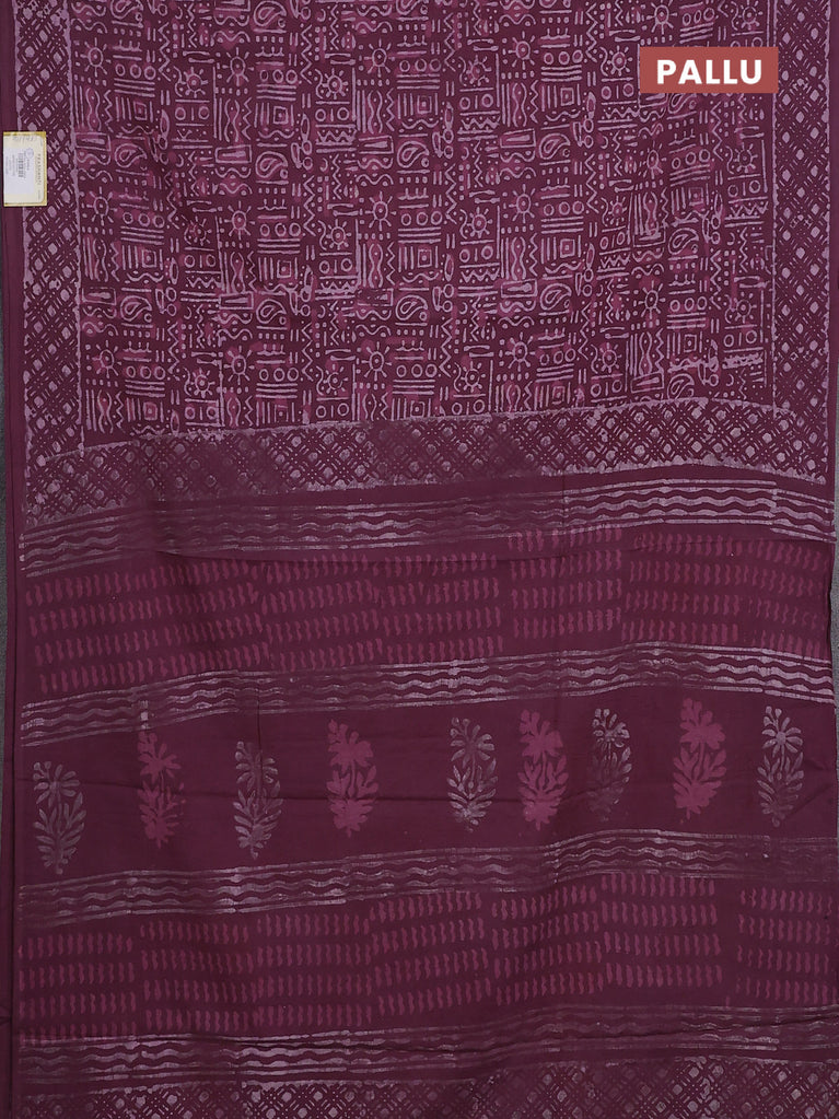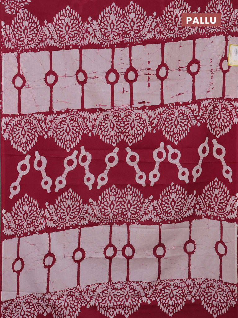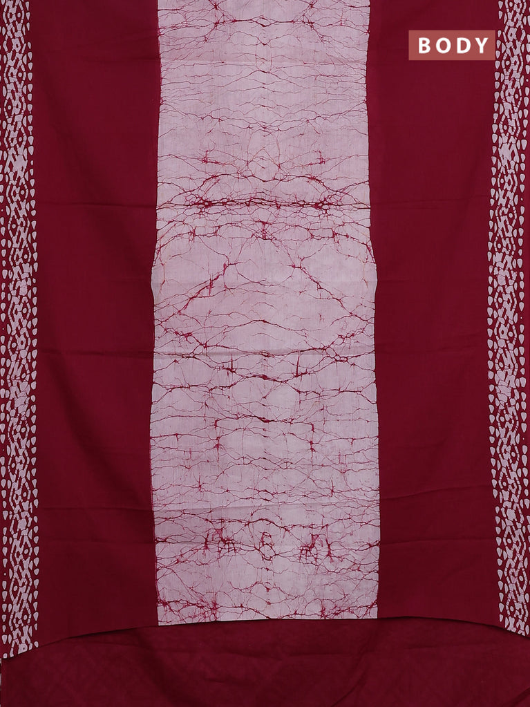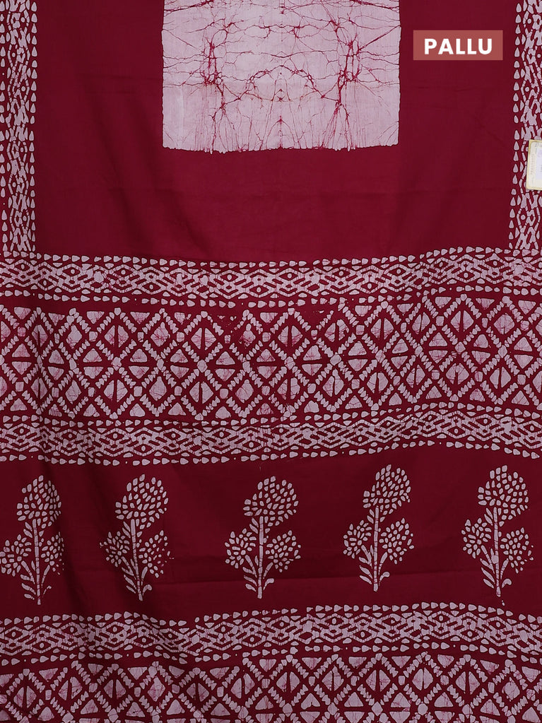 Jaipur cotton saree marron and off white with allover batik prints in borderless style
