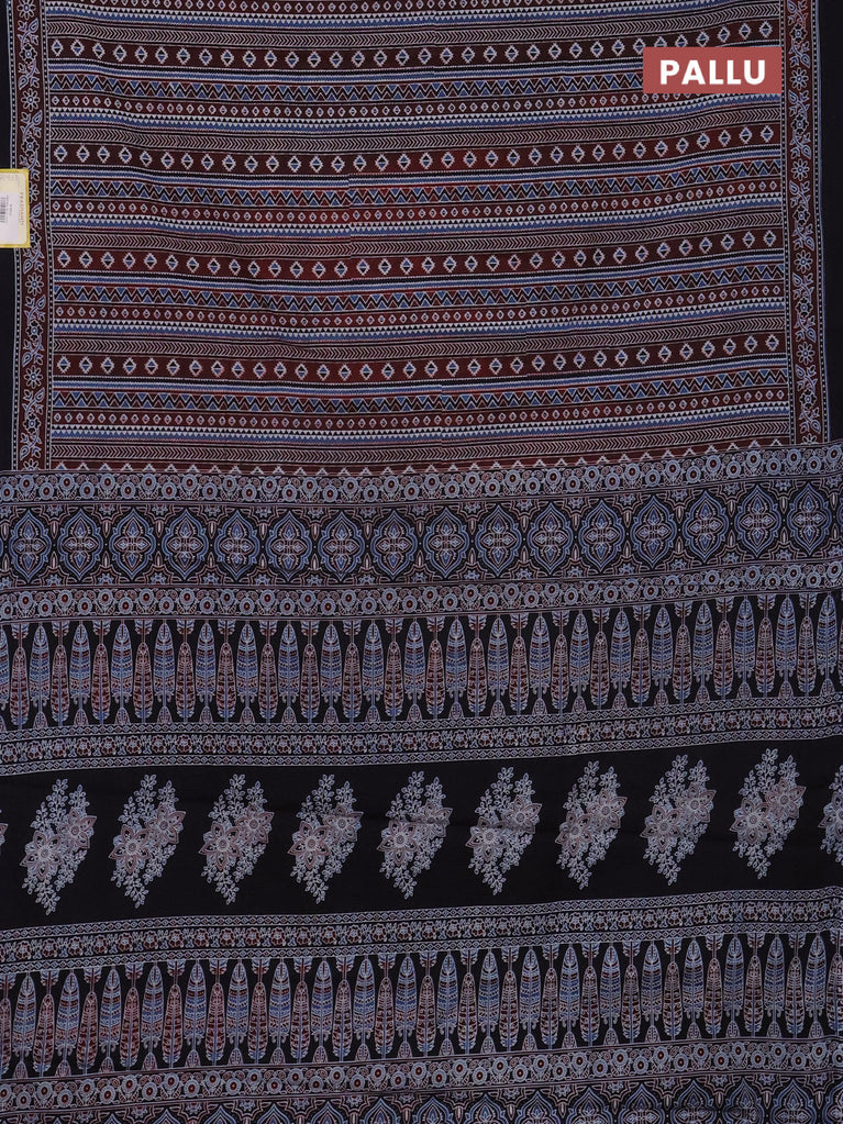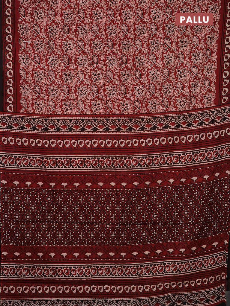 Jaipur cotton saree marron and black with allover ajrakh prints and printed border