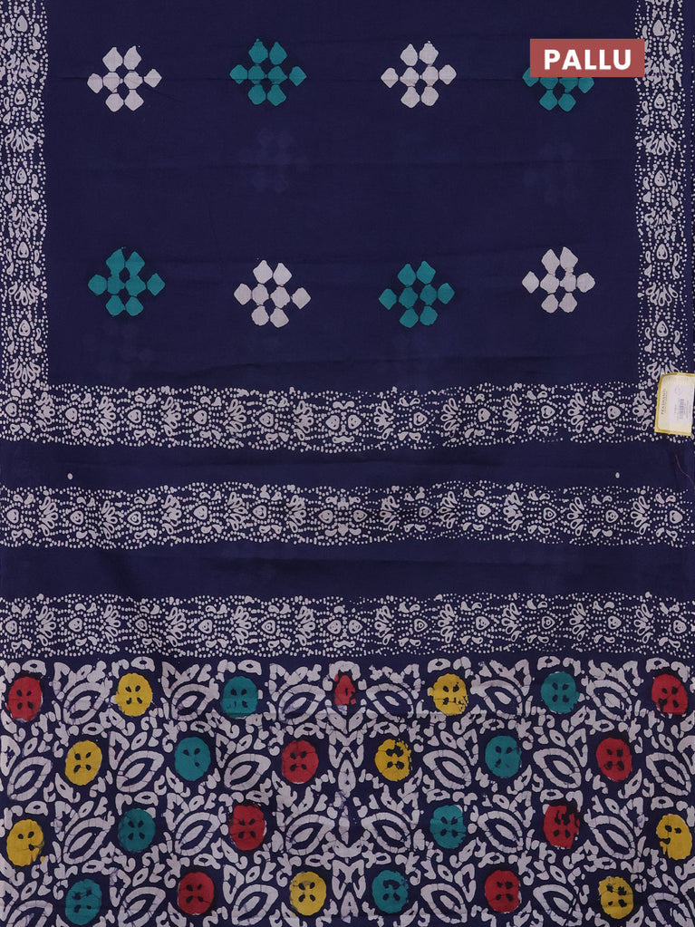 Jaipur cotton saree navy blue and off white with allover batik prints and printed border