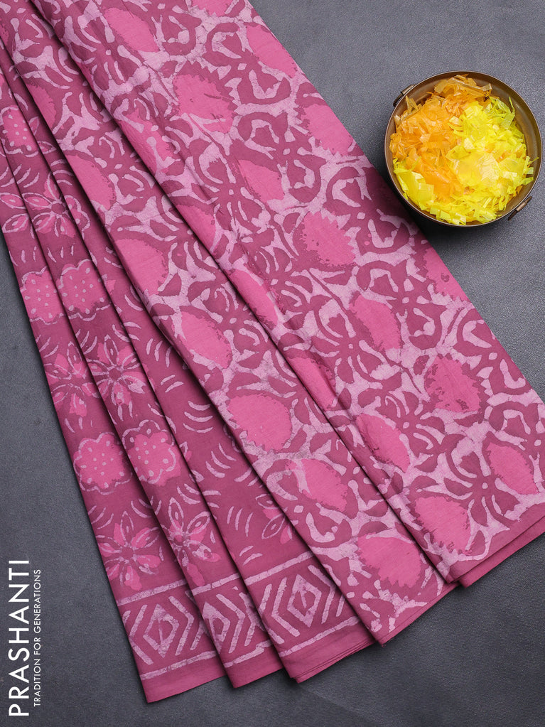 Jaipur cotton saree mauve pink with allover batik prints and printed border