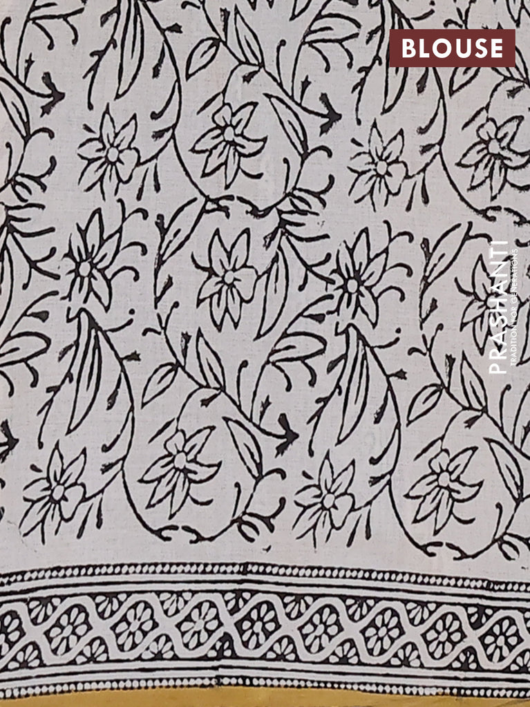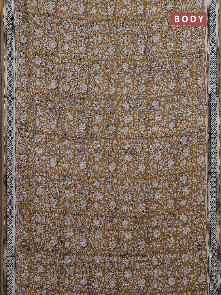 Jaipur cotton saree mustard and black with allover kalamkari prints and printed border