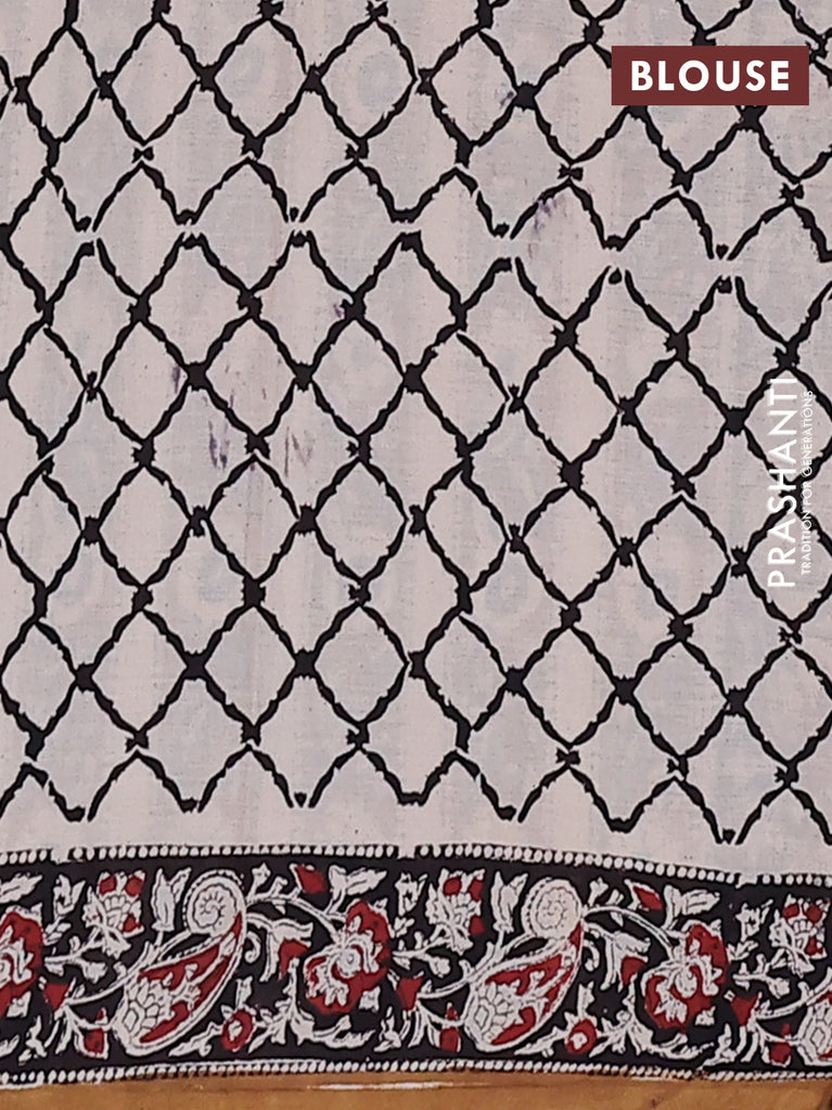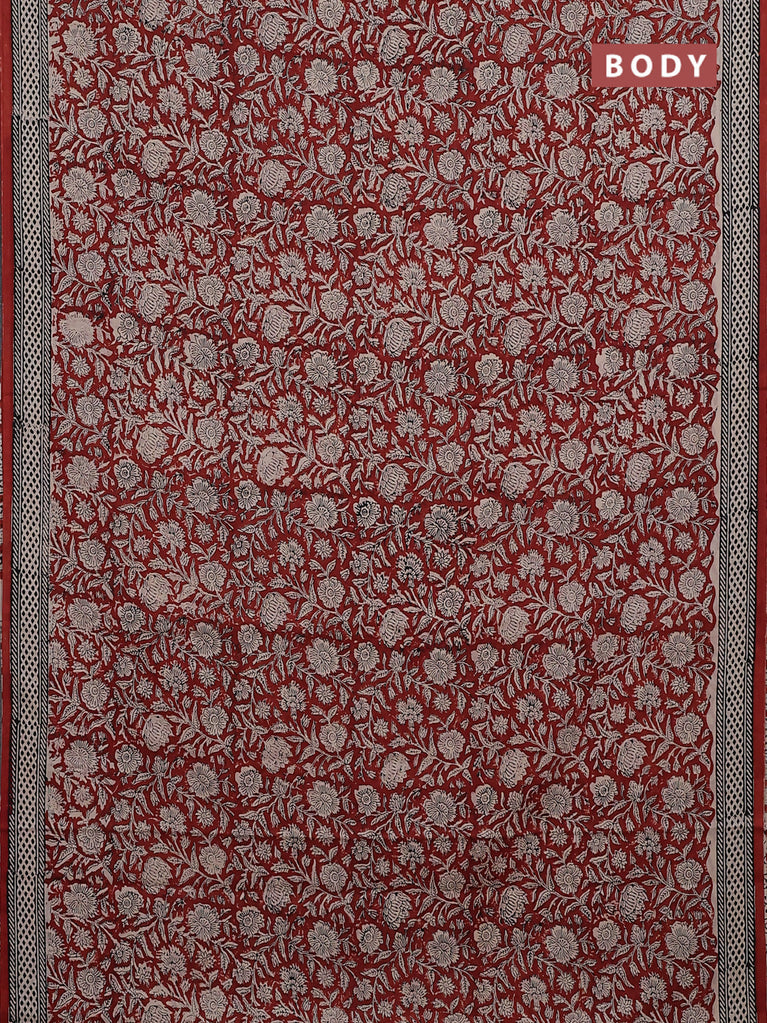 Jaipur cotton saree marron and black with allover kalamkari prints and printed border