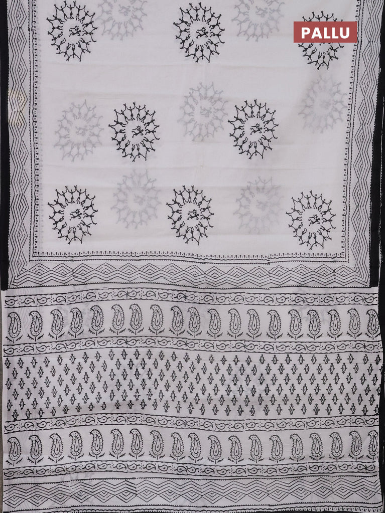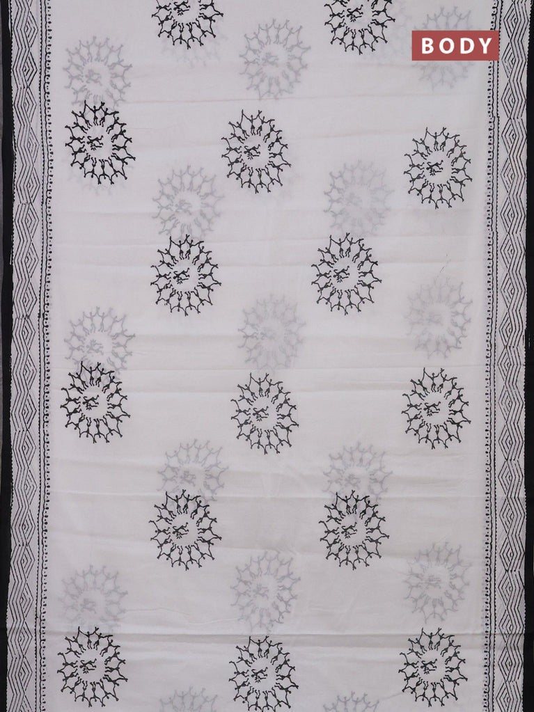 Jaipur cotton saree off white and black with warli butta prints and printed border
