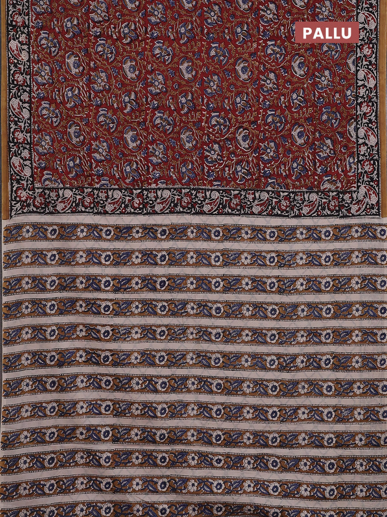 Jaipur cotton saree maroon and sandal with allover kalamkari prints and printed border