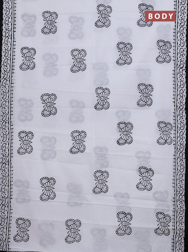 Jaipur cotton saree off white and black with butterfly butta prints and printed border