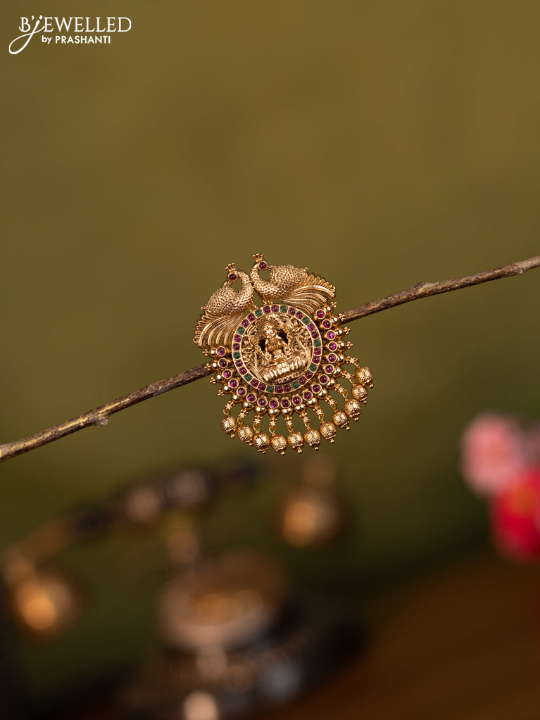 Antique jada billai peacock design with pink kemp stones and golden beads hanging