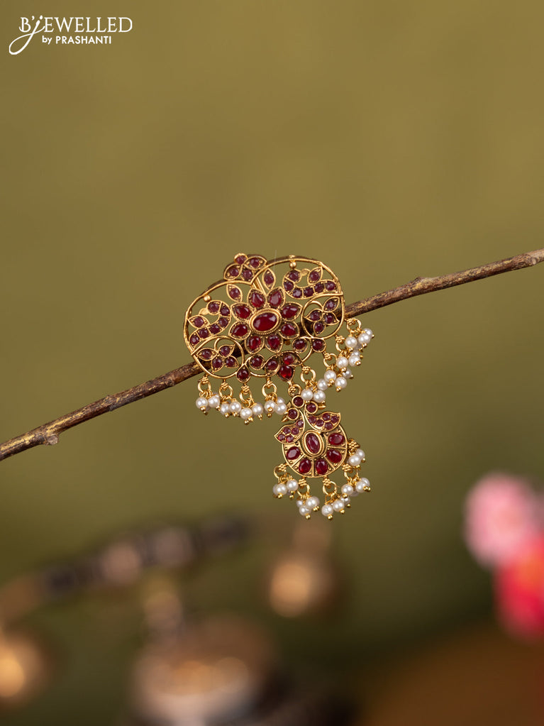 Antique jada billai lakshmi design with pink kemp stones and golden beads hanging
