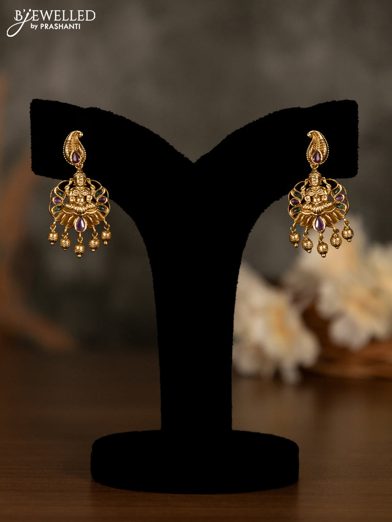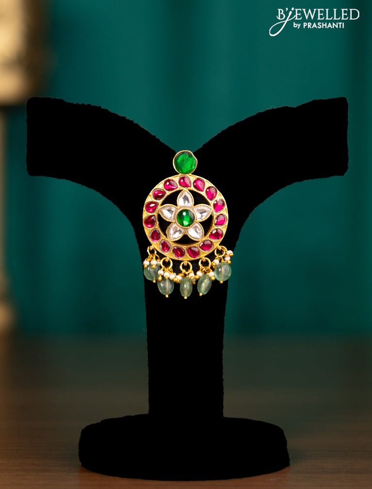 Antique pendant set lakshmi design with kemp stone and golden beads hangings