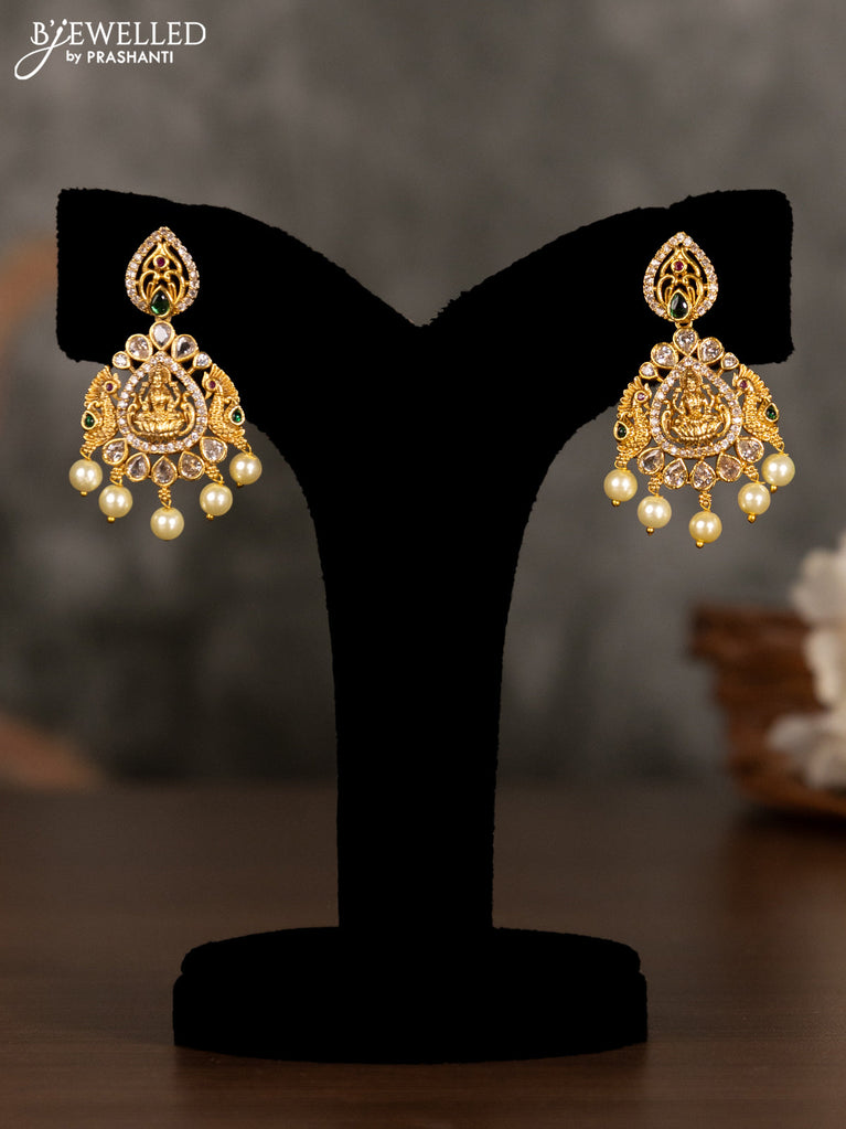 Antique pendant set lakshmi design with kemp & cz stones pearl hangings