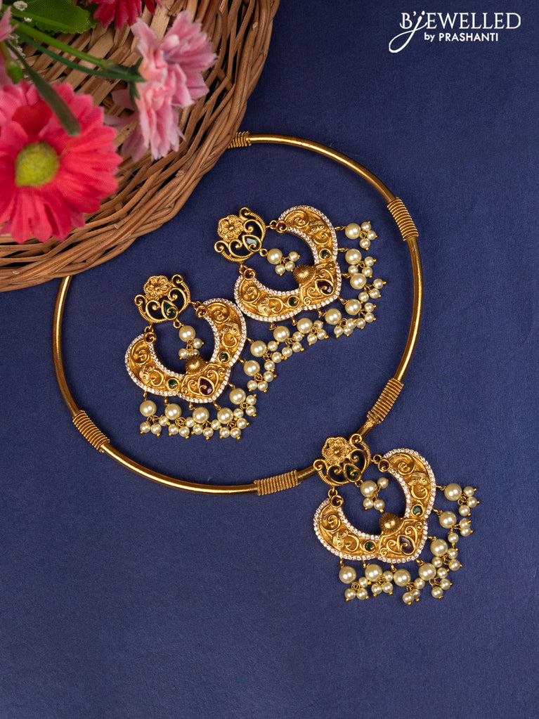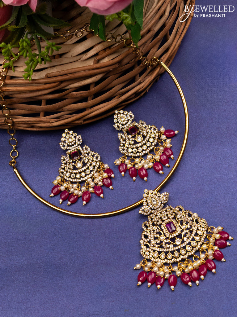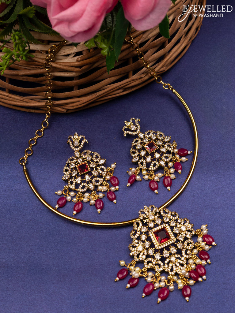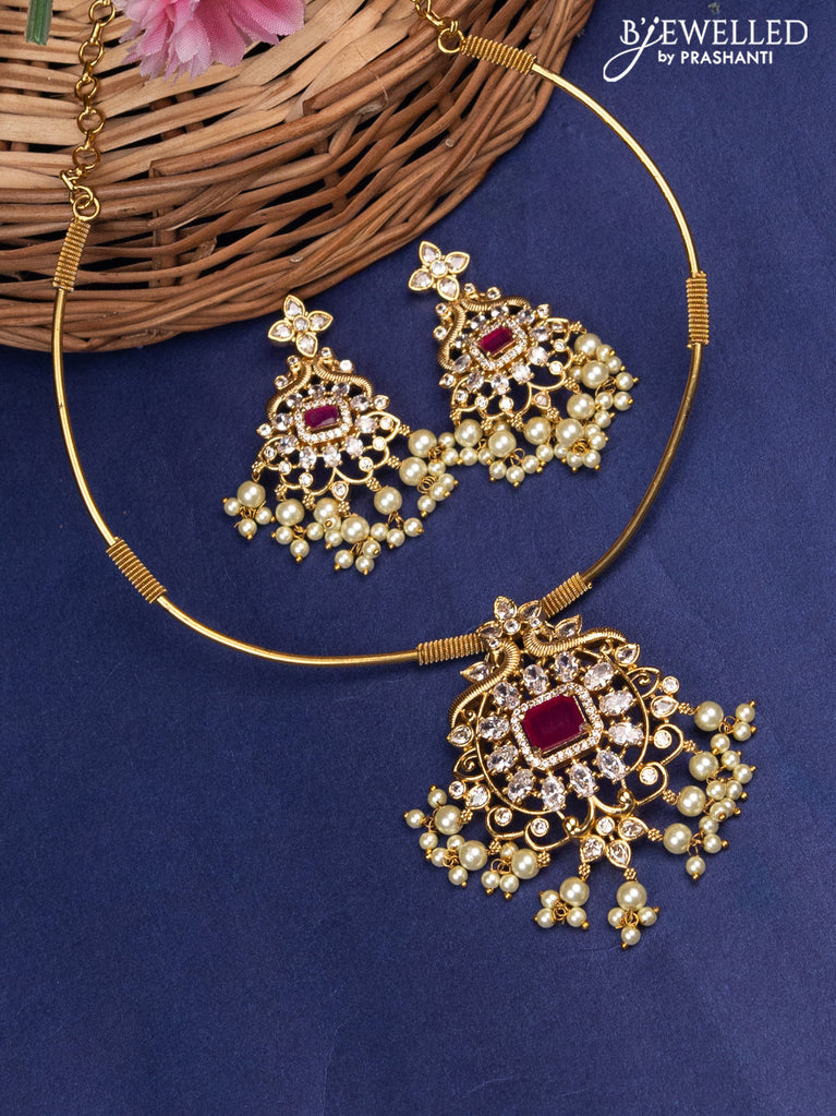 Antique ring type choker with ruby & cz stones and pearl hangings