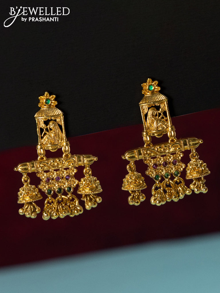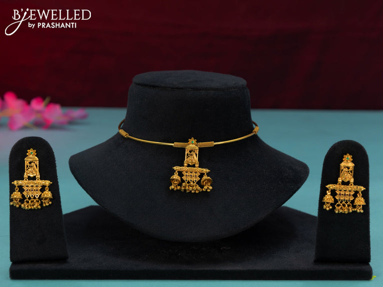 Antique ring type choker with kemp & cz stones and krishna pendant