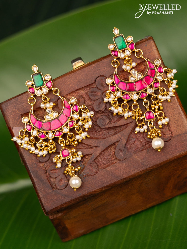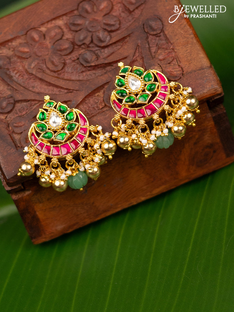 Antique screw type earrings chandbali design with jadau kundan stones and pearl & golden beads hanging