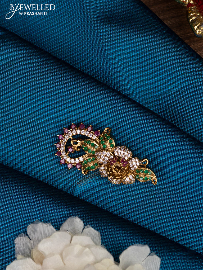 Antique saree pin with kemp and cz stones