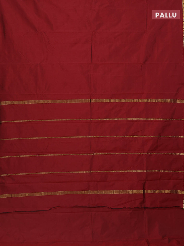 Arani semi silk saree maroon and light green with allover silver zari weaves and piping border