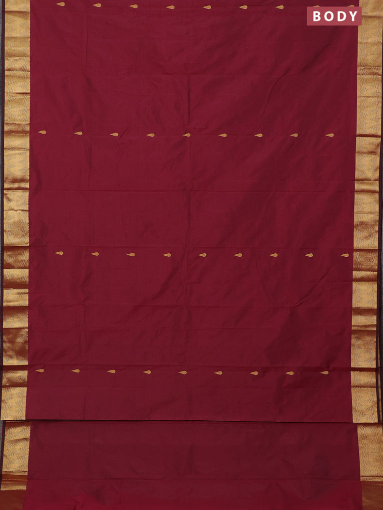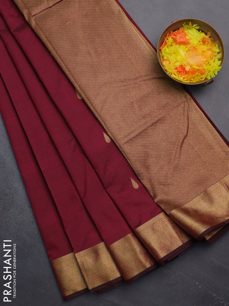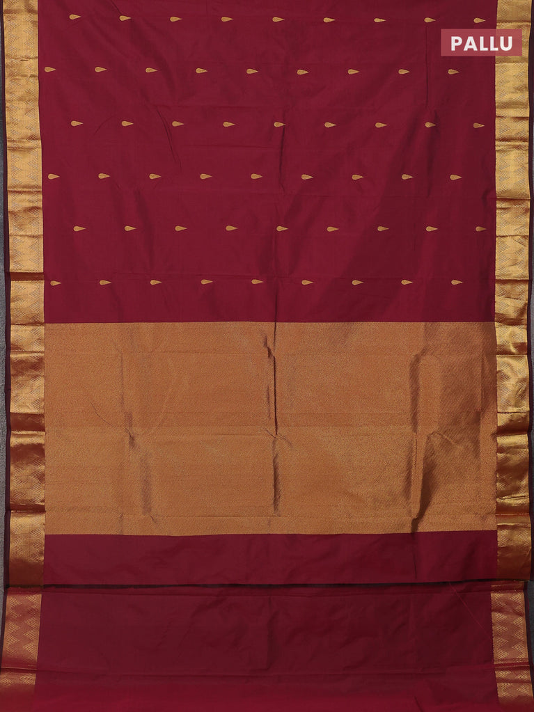 Arani semi silk saree maroon shade with rudhraksha & paisley zari woven buttas and zari woven border