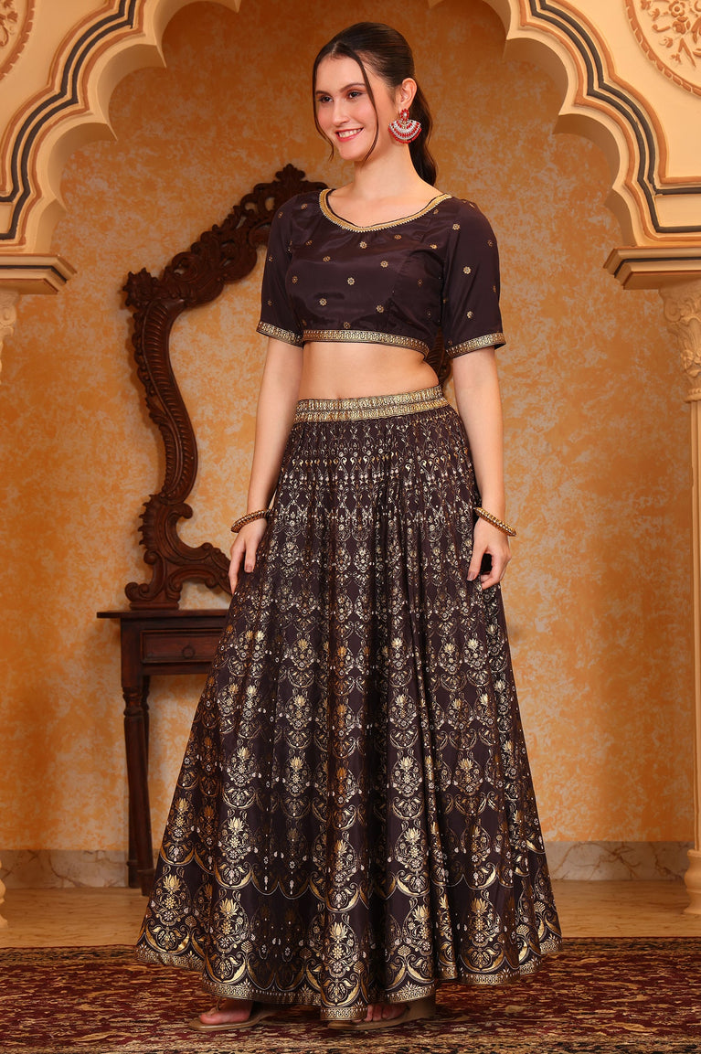 Step into the festive season with Aurelia’s black crop top, skirt, and dupatta co-ord set, a masterpiece of modern-ethnic design. The crop top features a V-neckline and half sleeves, adorned with intricate tape embellishments that add a touch of regal charm. The mid-rise skirt flows gracefully with an abstract pattern, creating a harmonious blend of tradition and contemporary style. The lightweight polyester fabric ensures comfort and ease, while the woven texture adds depth to the ensemble. Perfect for festive gatherings, this set pairs beautifully with statement jewelry and heels, making you the center of attention. Hand wash care ensures longevity, allowing you to cherish this elegant outfit for years to come.