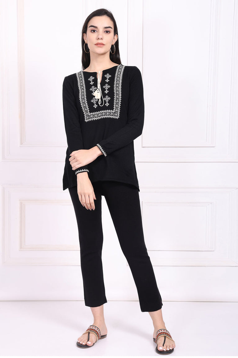 Experience the perfect blend of comfort and style with Aurelia's fusion kurti. This mid-thigh length kurti features a band neckline and three-quarter sleeves, making it ideal for casual wear. Crafted from pure cotton, it ensures breathability and softness against your skin. The black hue adds versatility to your wardrobe, while the straight cut and slit detail enhance its contemporary appeal. This woven kurti is designed for the modern woman who values both tradition and trend. The 100% cotton composition guarantees durability and easy maintenance. Whether you're running errands or meeting friends for a casual outing, this kurti will keep you looking effortlessly chic. Its fusion ethnicity allows for versatile styling options, making it a must-have addition to your wardrobe. Aurelia's attention to detail and quality craftsmanship shines through in this piece, offering you a perfect balance of comfort and fashion.