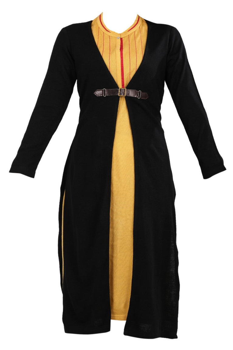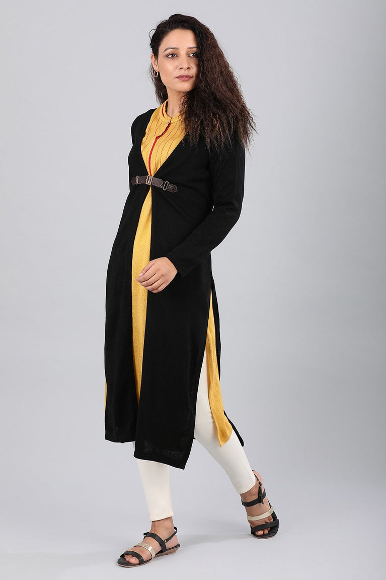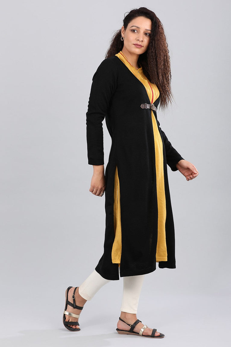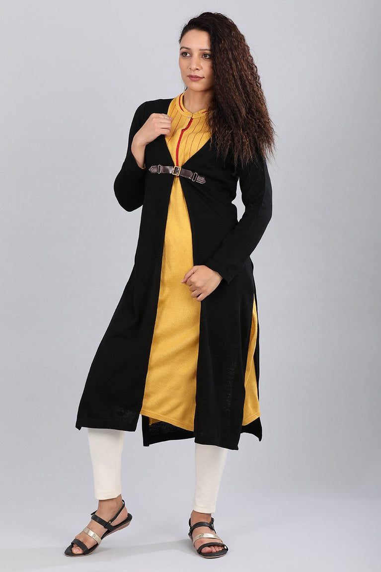 Get a classy look this winter season in this black yarn-dyed kurta. The kurta has round neck and straight silhouette with no slit.