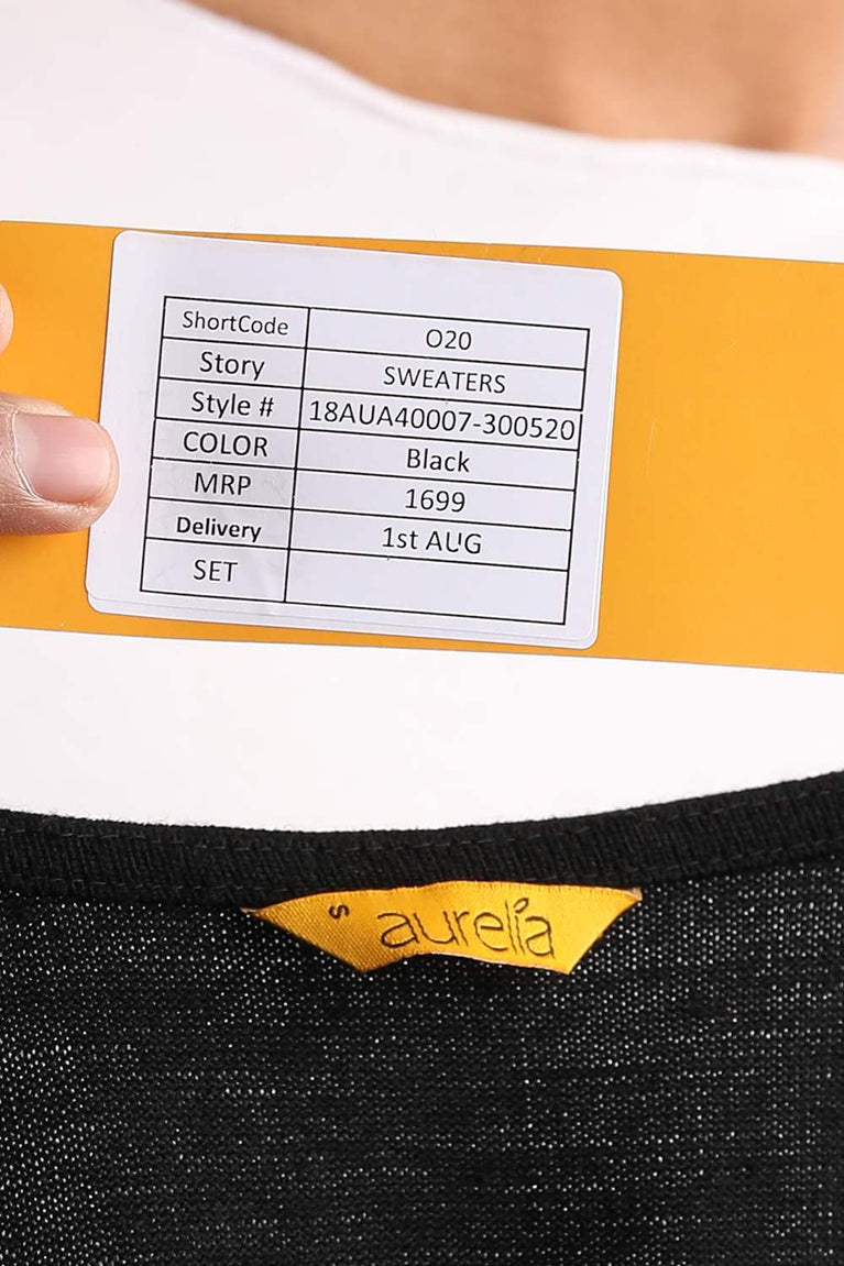 Black V-neck full sleeve self-designed sweater with button closure on the front.