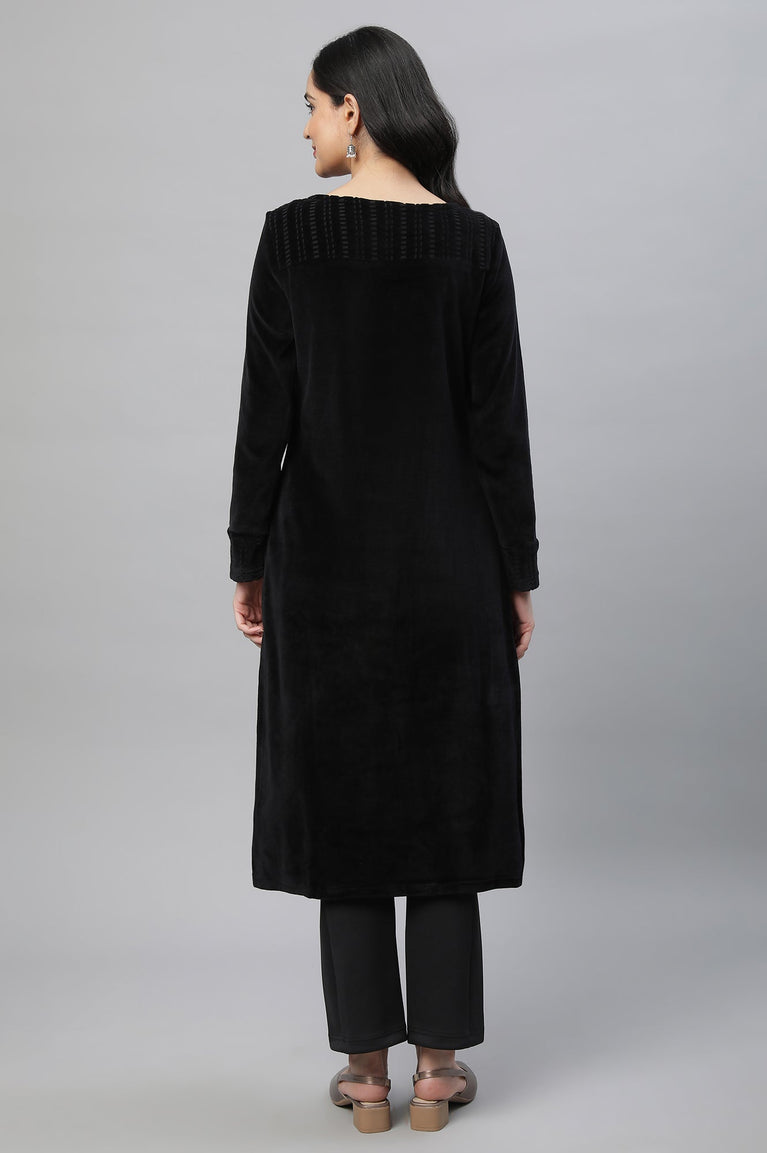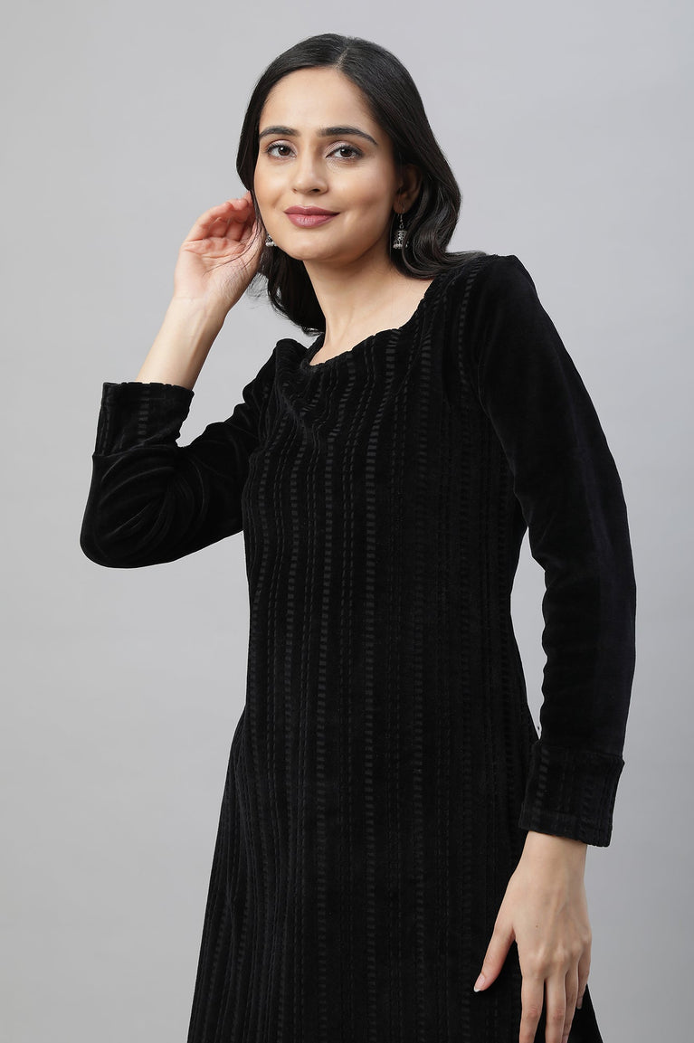 Keep It Simple Yet Trendy By Putting On This Velour Kurta. It Has A Unique And Interesting Geometric Cutwork That Is Sure To Make You Stand Out From The Crowd. Pair It With Our Fashionable Shawls And Tights To Amp Up Your Look.