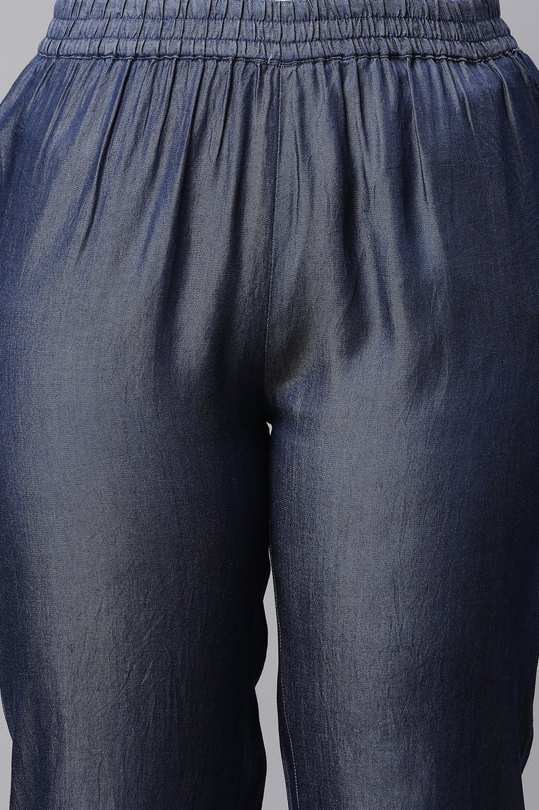 Got love for denim? Here is your easy pick for denim, this light weighted tencil fabric fulfills your denim craving. Its dainty lace detailing on neck and sleeve gives an extra feminine look to it whereas its curved hem make you look confident and smart.