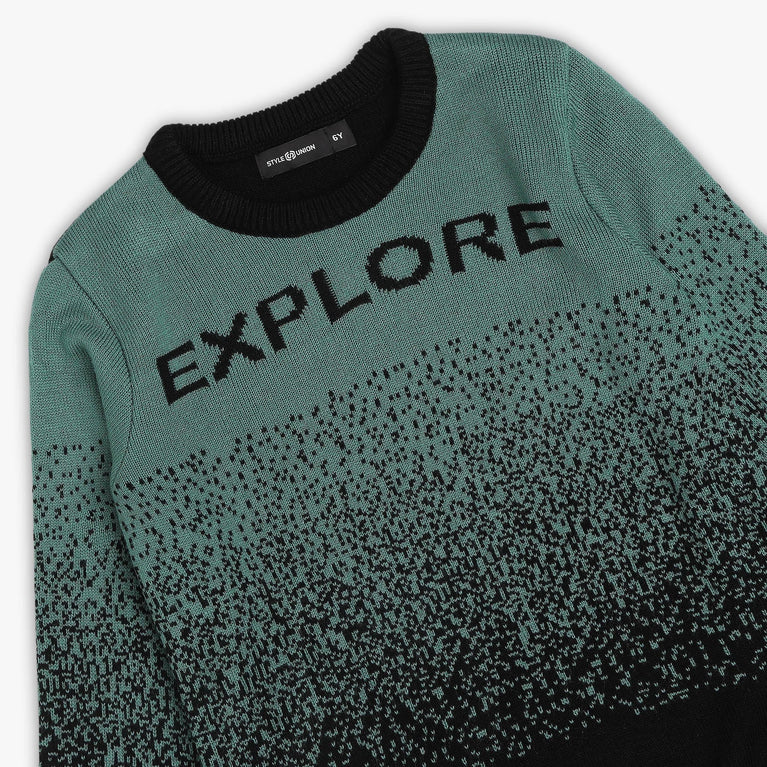 These solid pattern sweater has crew neck and full sleeve. Made from acrylic, your kid's feel comfortable wearing the product.