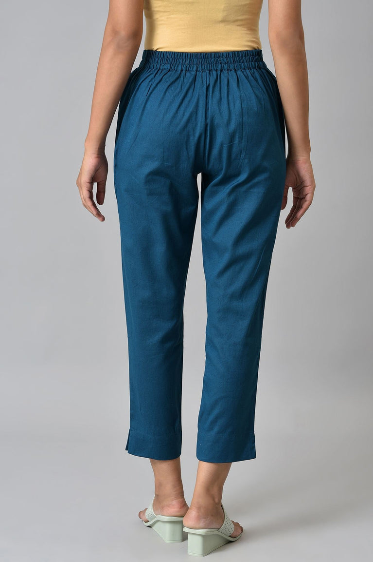 Blue Thread Embroidery Pure Cotton Straight Kurta and Trouser Set