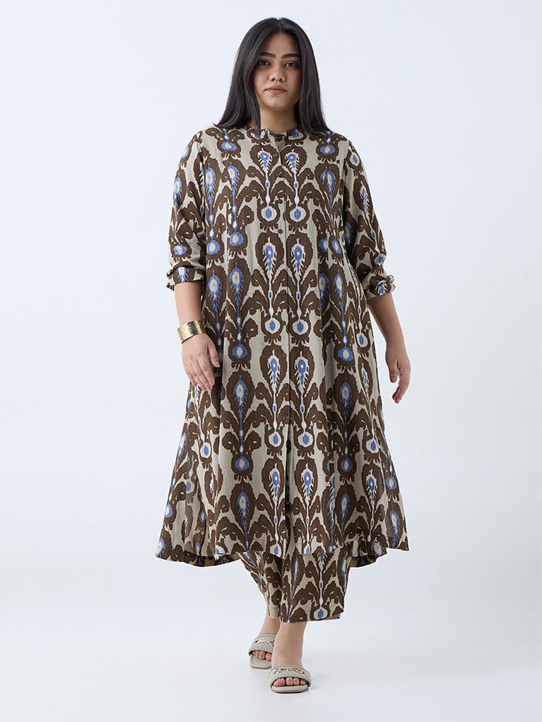 Diza Dark Brown Foliage Detailed A-Line Kurta