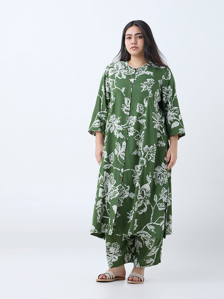 This green kurta from Diza is defined with graceful floral prints that add a touch of elegance to your festivities. Shaped in a flattering A-line silhouette, it’s crafted from a breathable fabric and finished with a band neck collar, button placket, and three-quarter sleeves. A discreet slip pocket adds functional ease, making it a thoughtful blend of style and comfort.