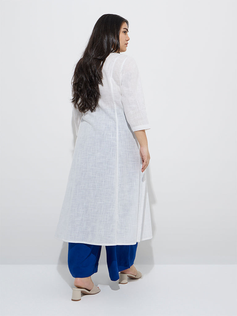 Diza White Schiffli Embroidered A-Line Cotton Kurta