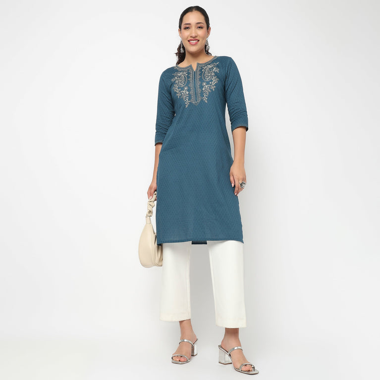 Pair this kurta with leggings or palazzos for an effortlessly chic outfit suitable for any occasion.