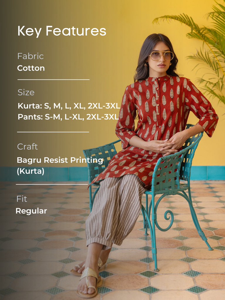 Set of 2 - Nitya Bagru Block Printed Kurta and Lantern Pants