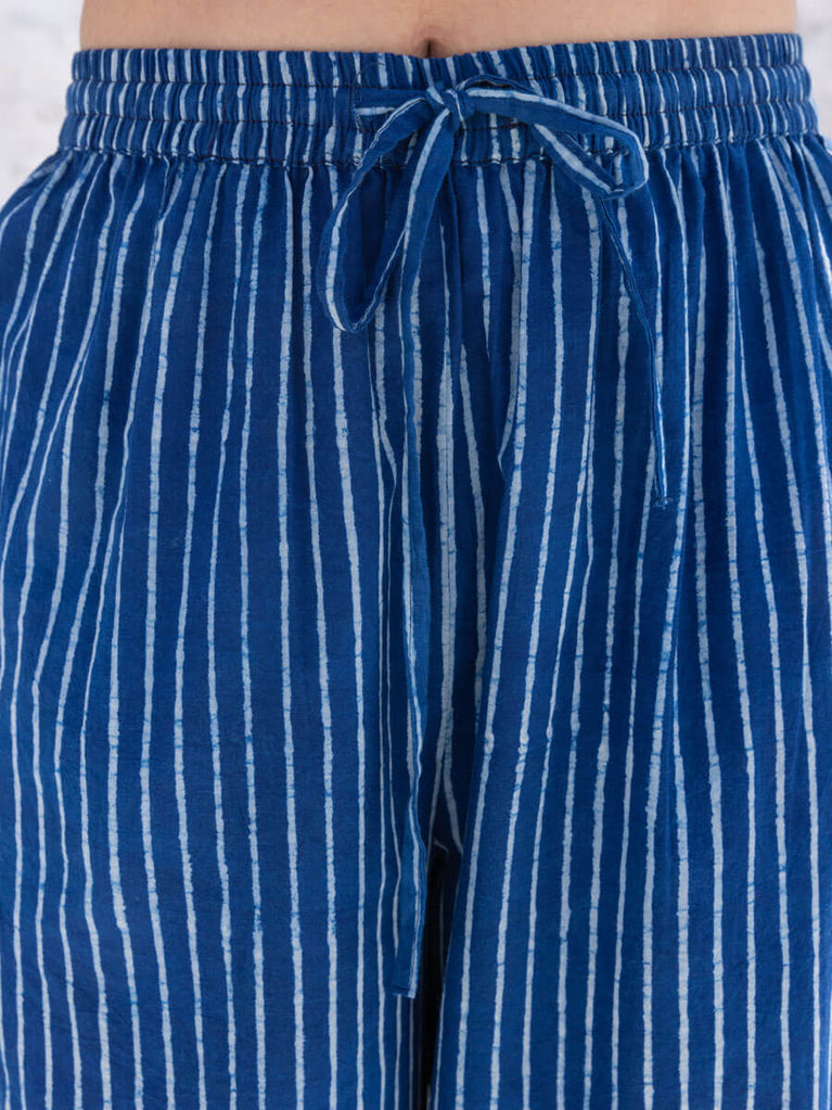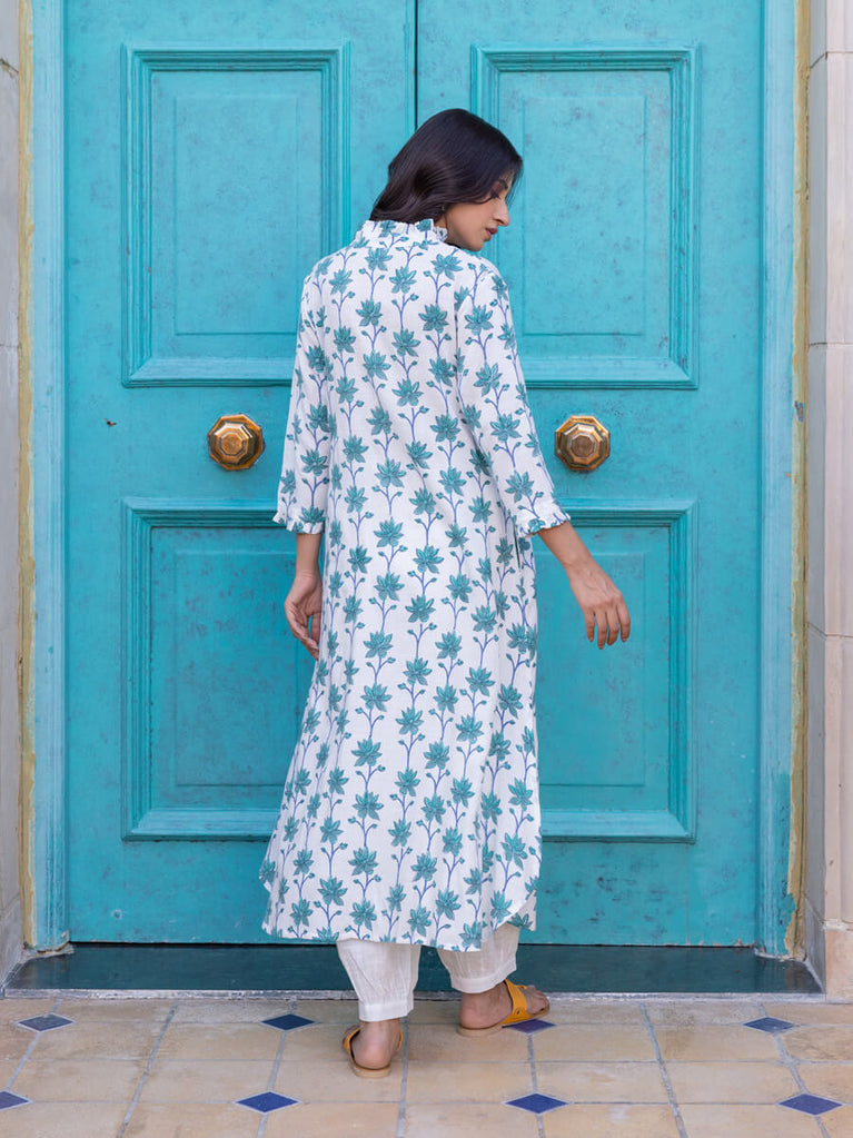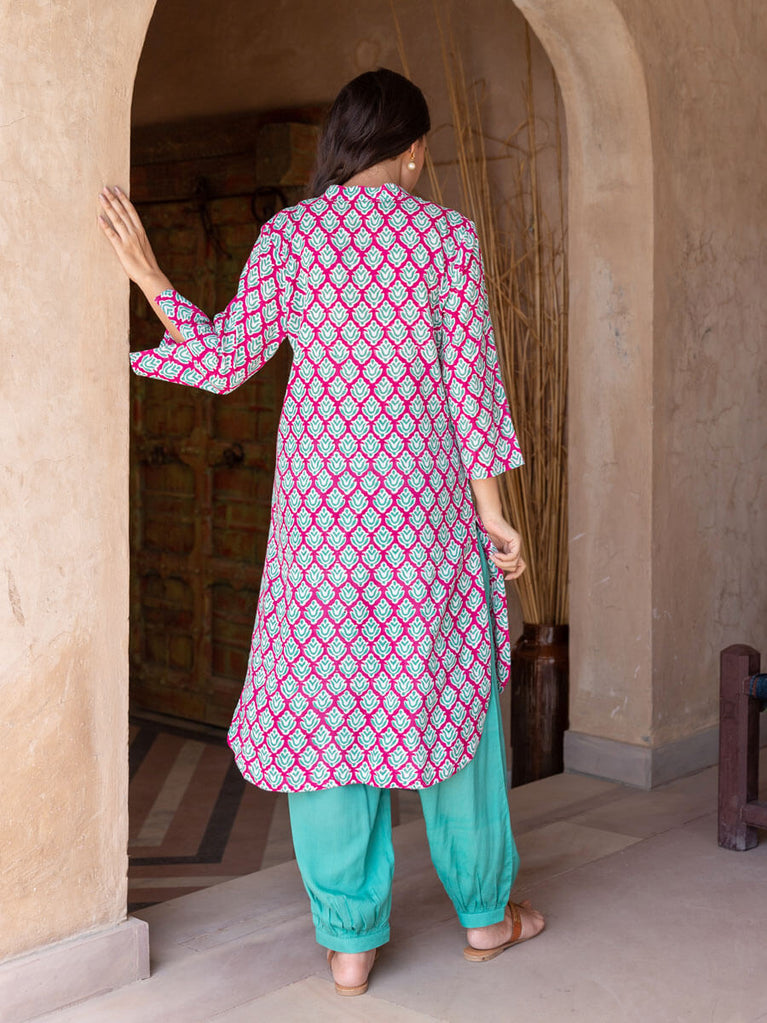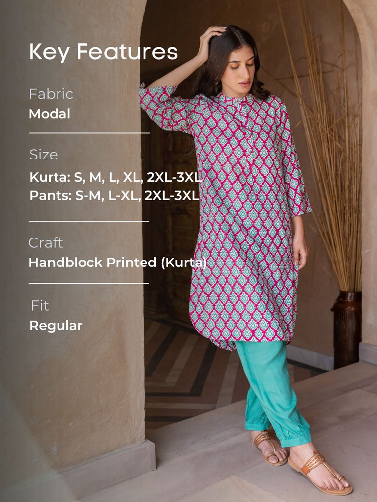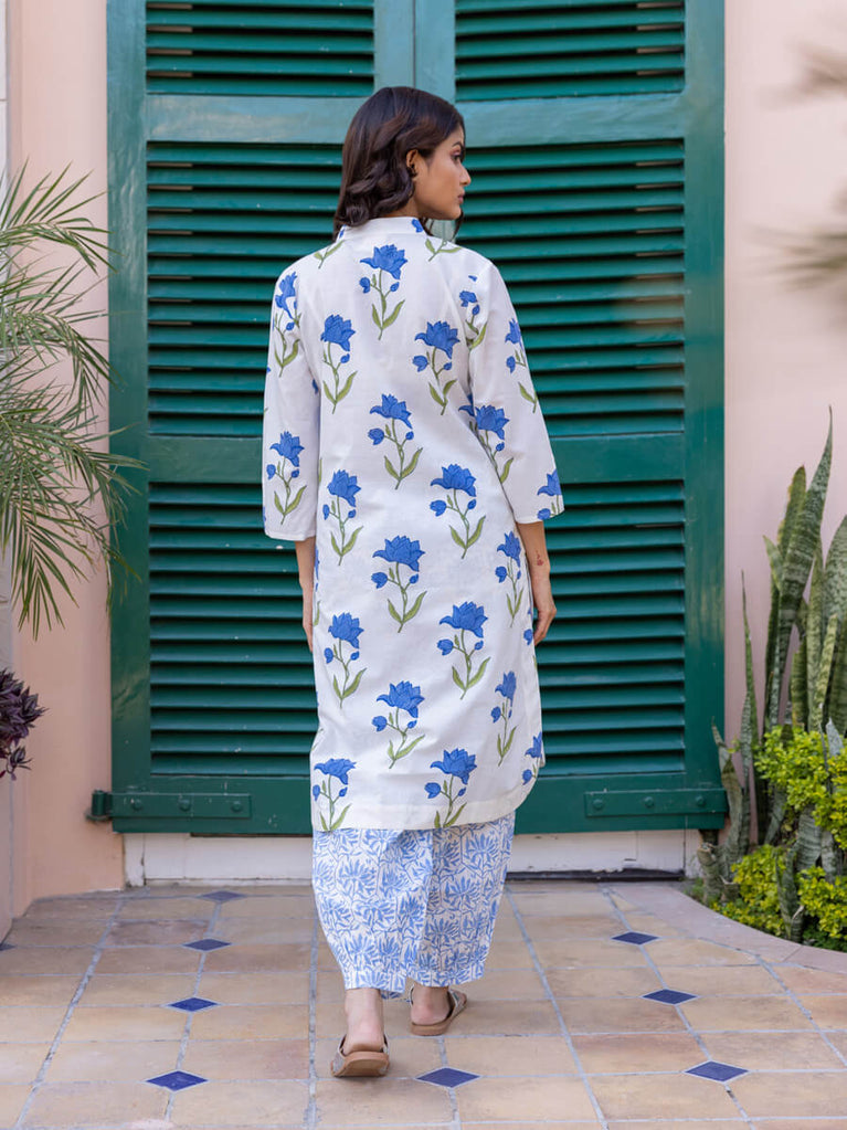 Set of 2 - Blue Lotus Block Printed Kurta and Lantern Pants