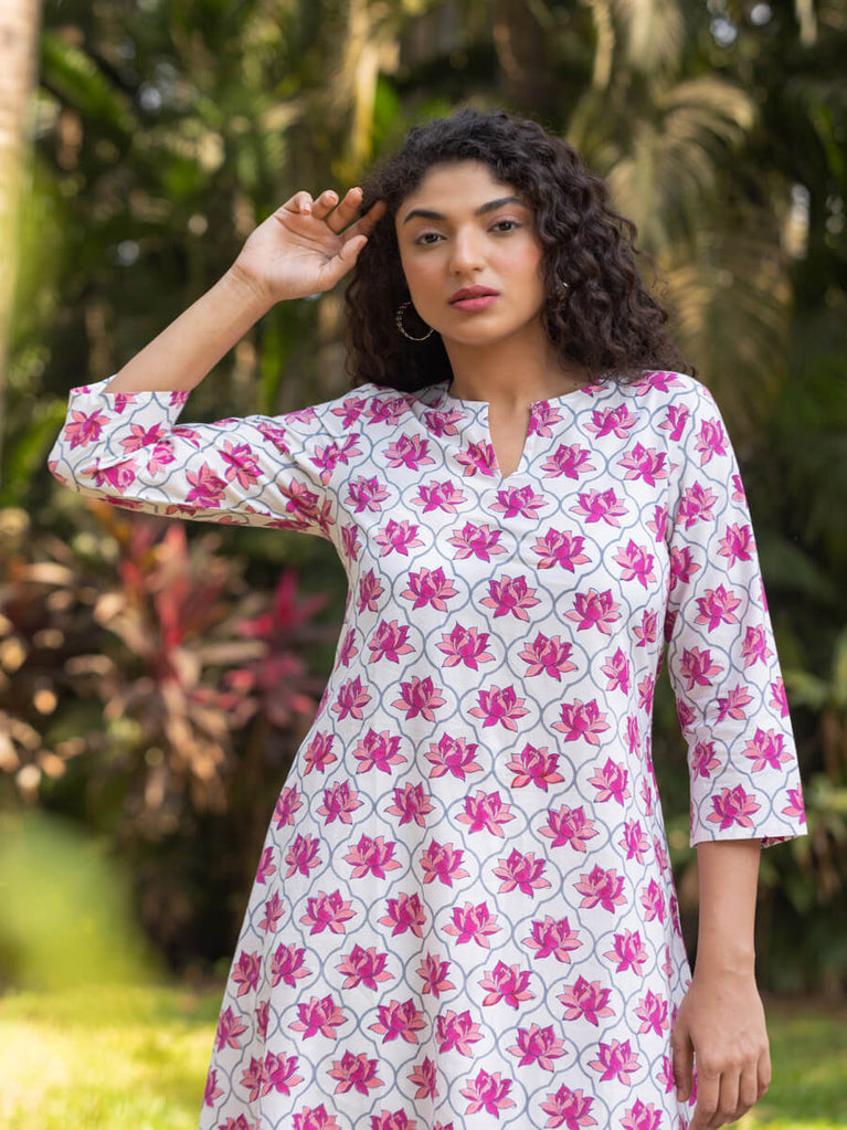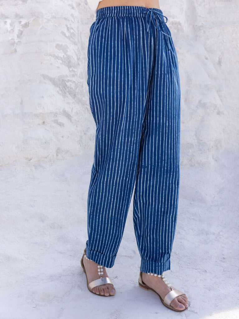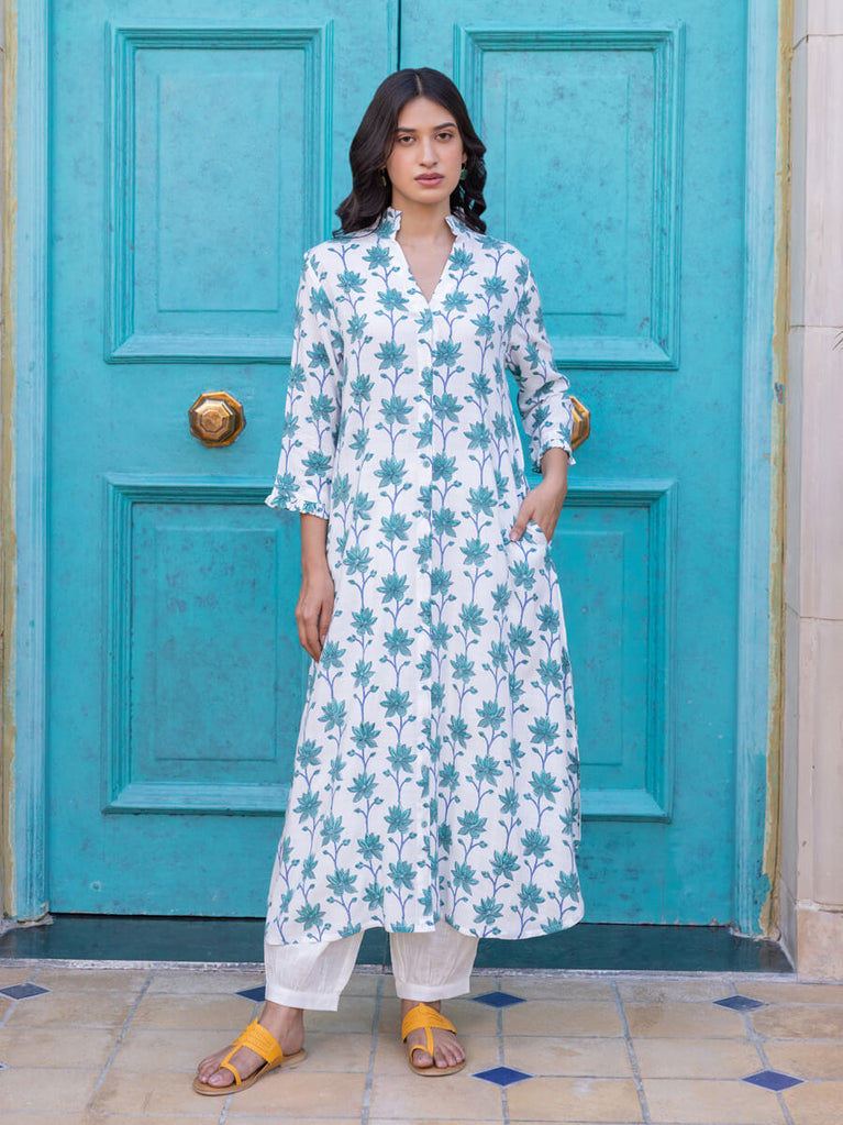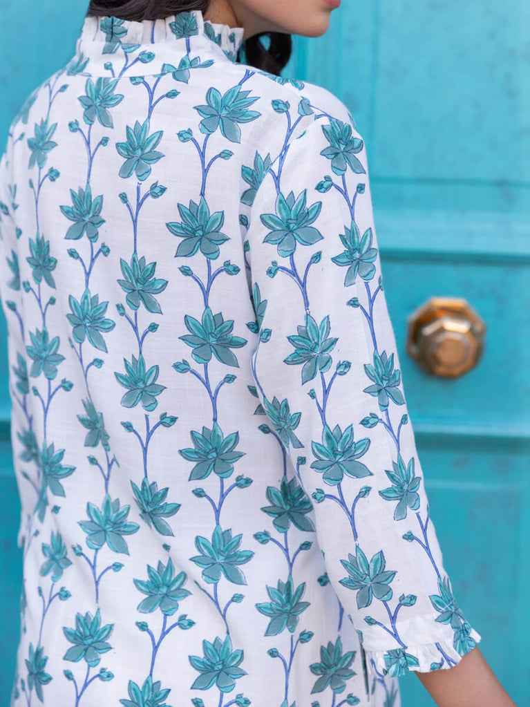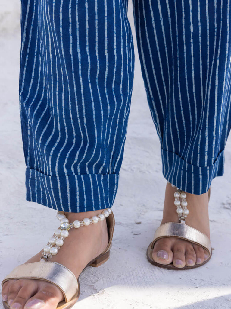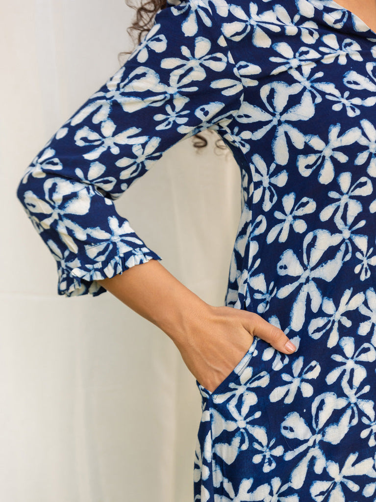 Set of 2 - Blue Lotus Block Printed Kurta and Lantern Pants