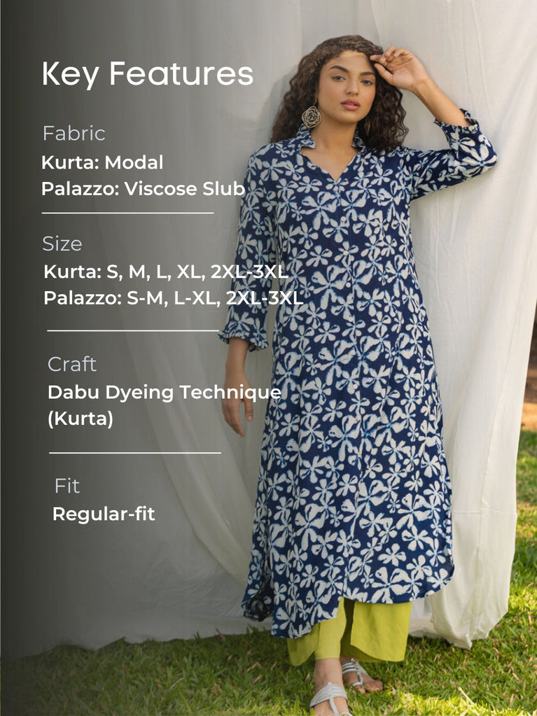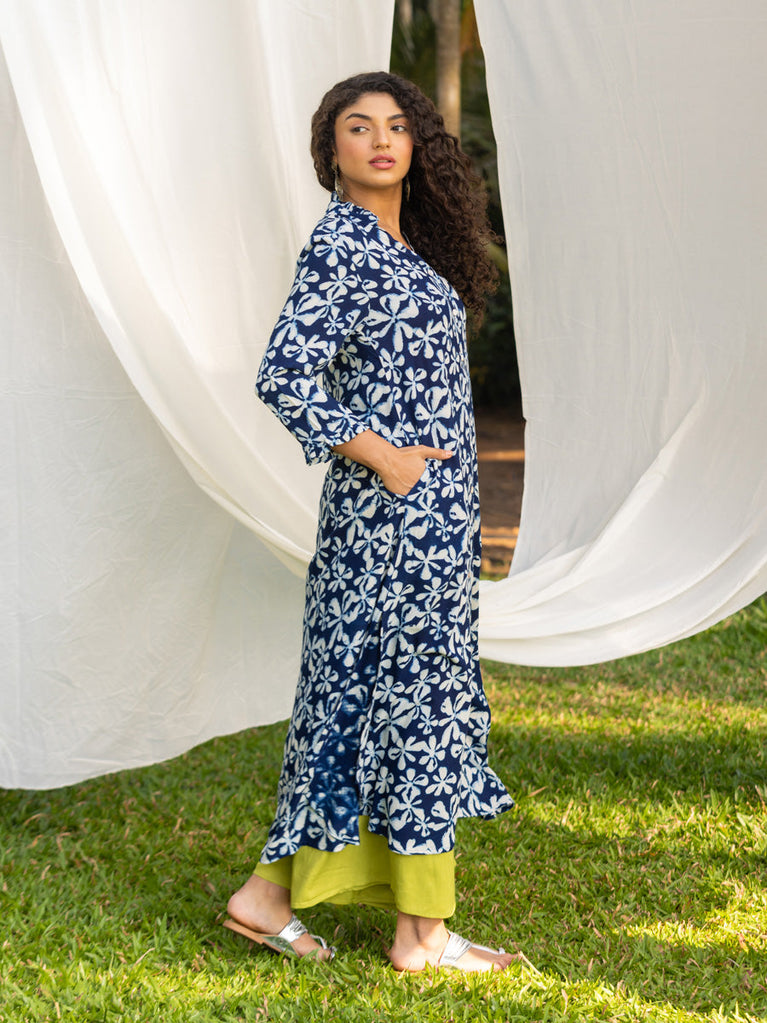 Set of 2 - Antara Indigo Kurta and Wrap-around Pants
