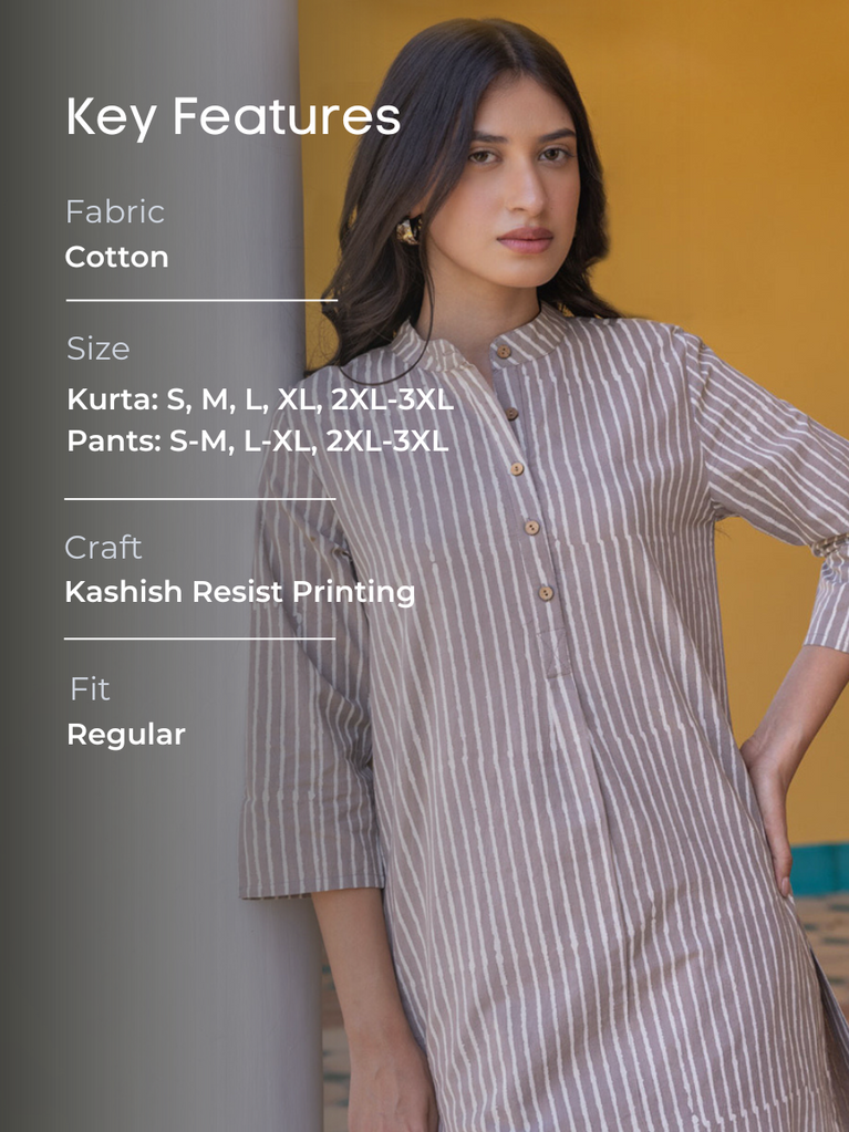 Set of 2 - Kesha Grey Cotton Kurta and Pants