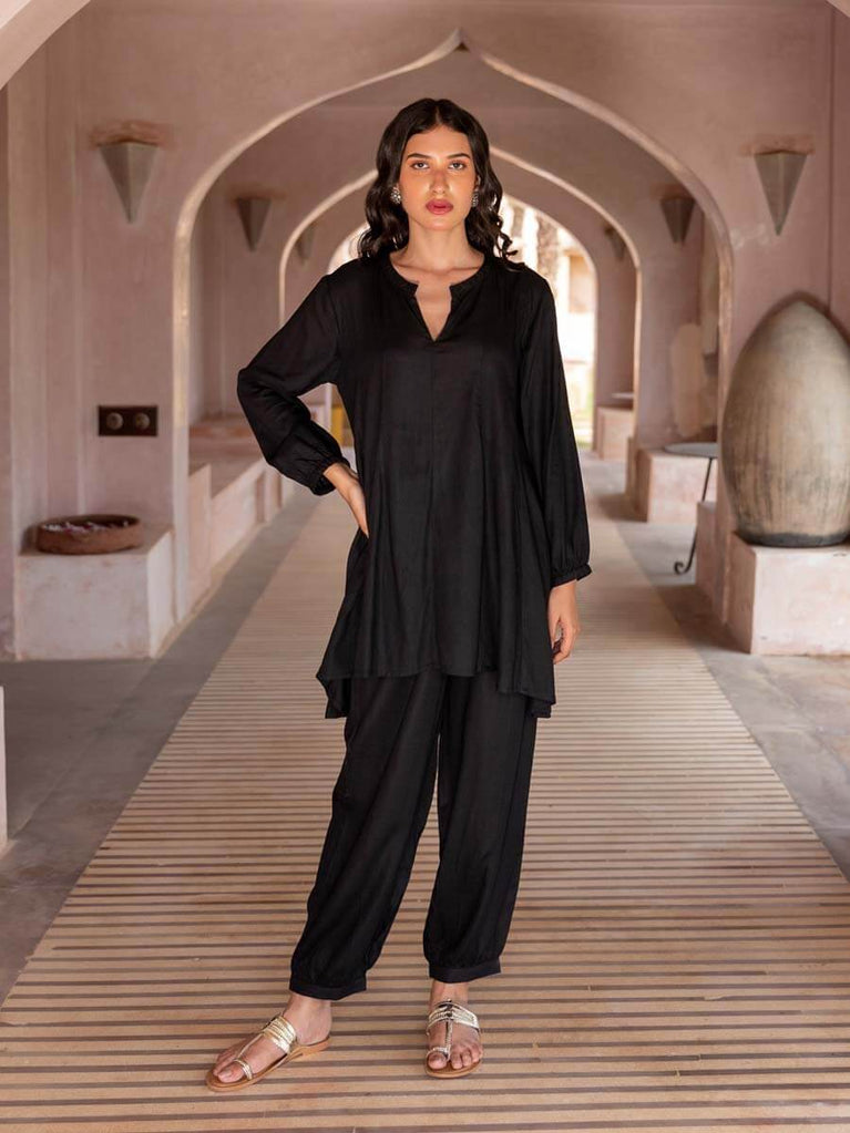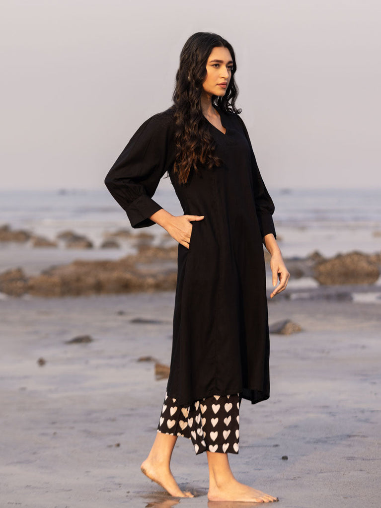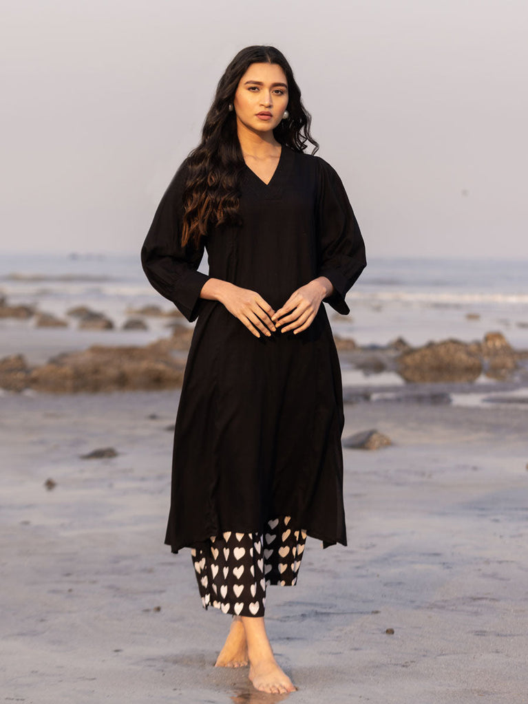 Set of 2 - Moh Long Black Kurta and Palazzo