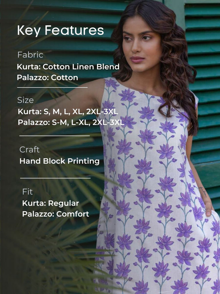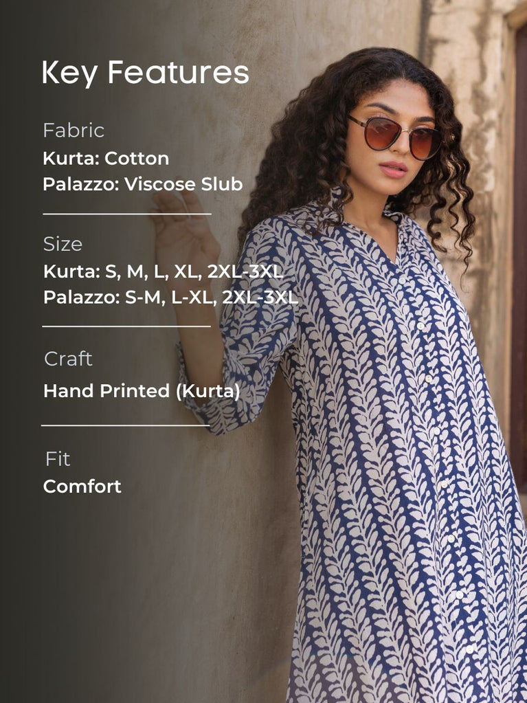 Set of 2 - Shayari Block Printed Kurta and Palazzo Pants