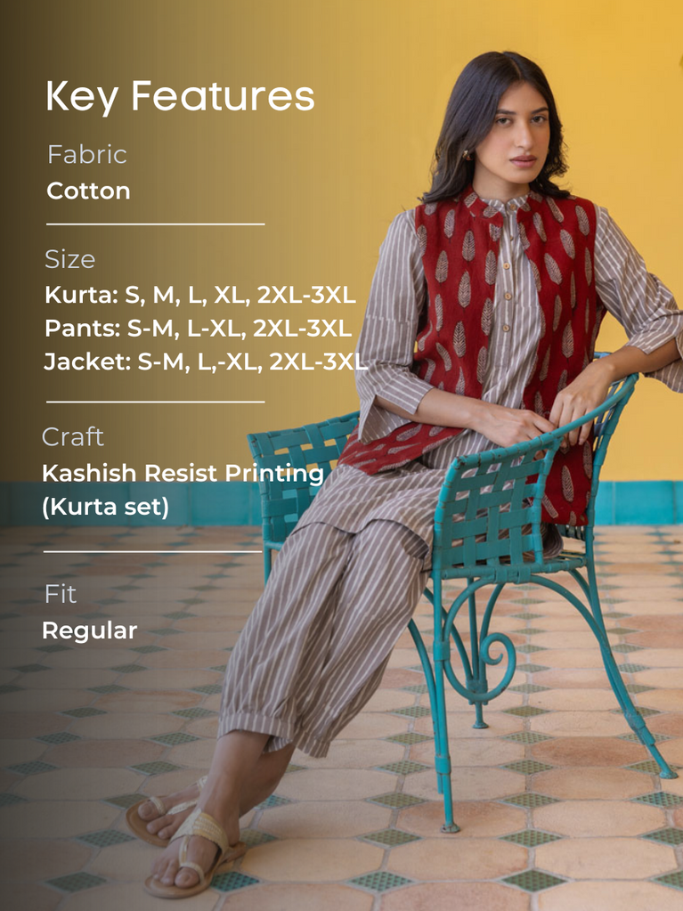 Set of 3 - Pujo Kurta, Lantern Pants and Jacket