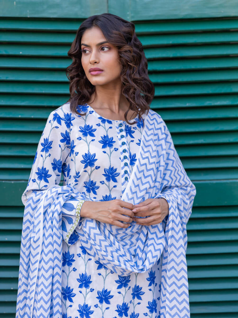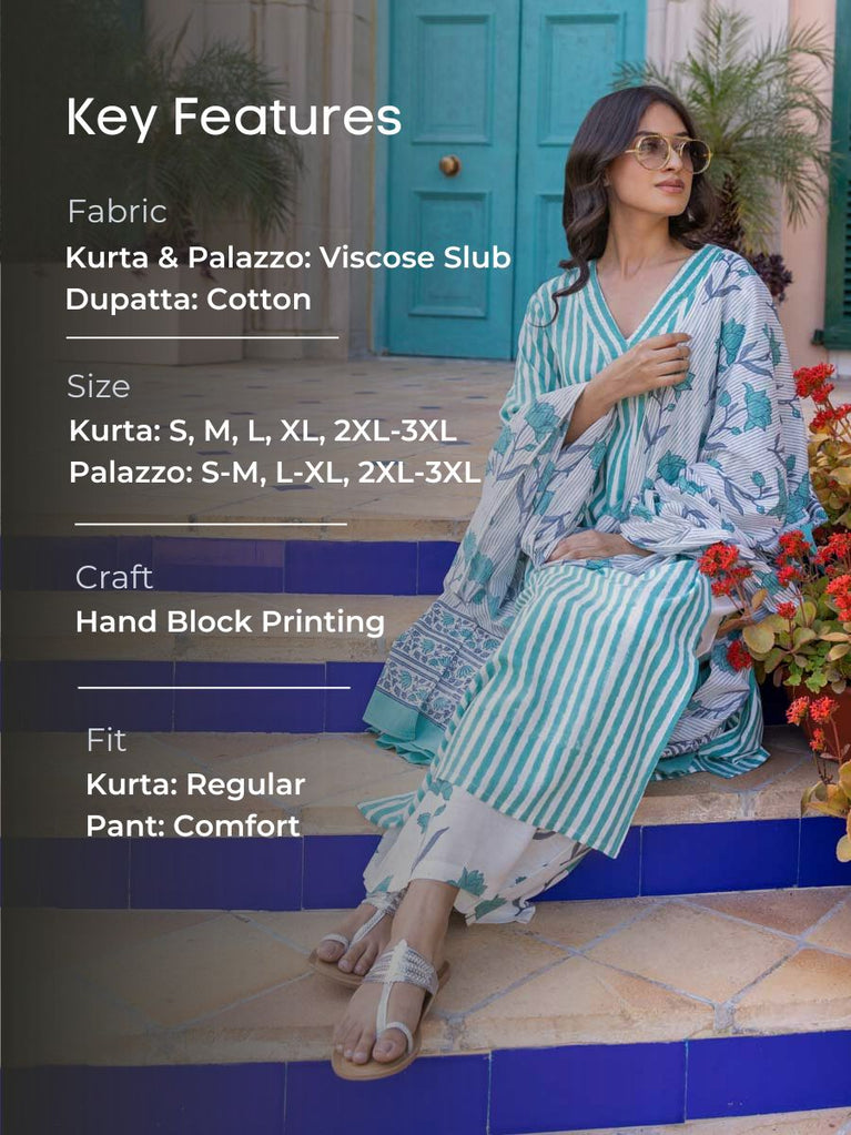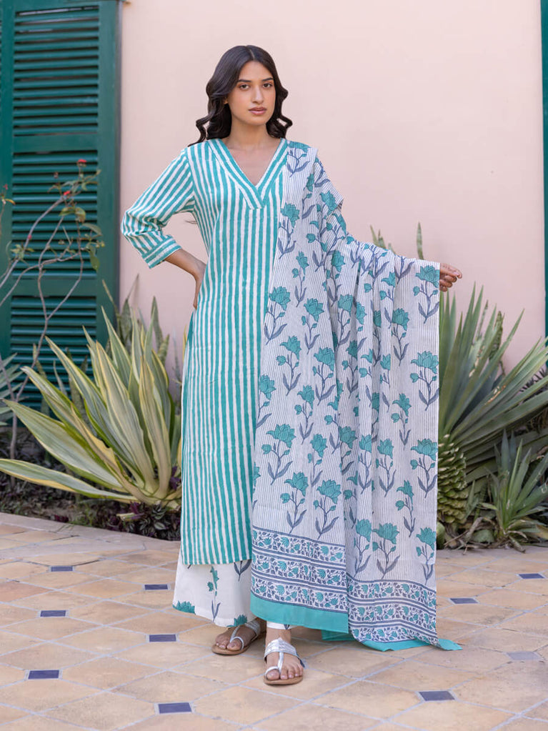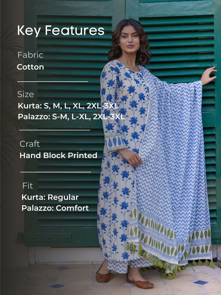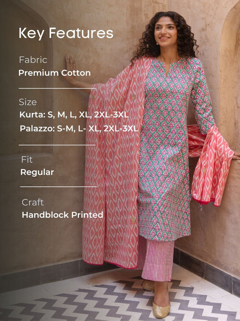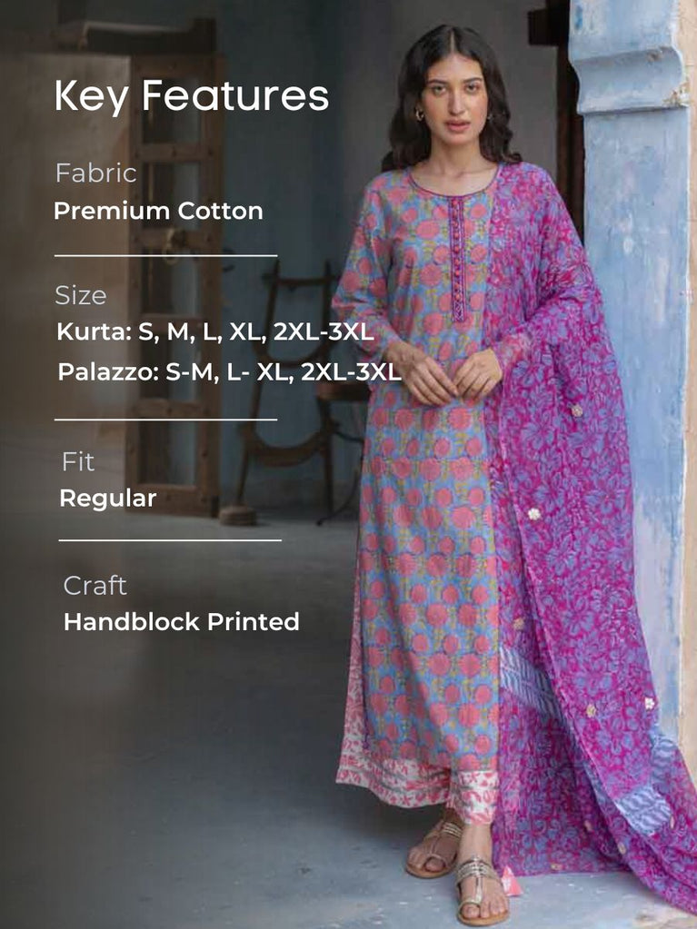 Set of 3 - Geetanjali Cotton Kurta, Palazzo and Dupatta