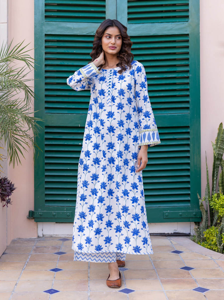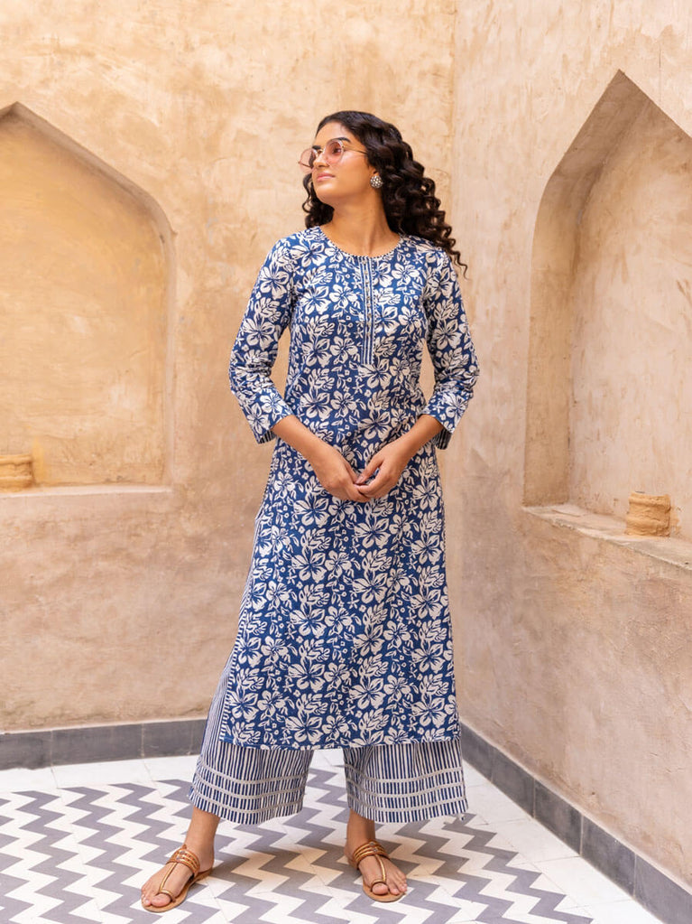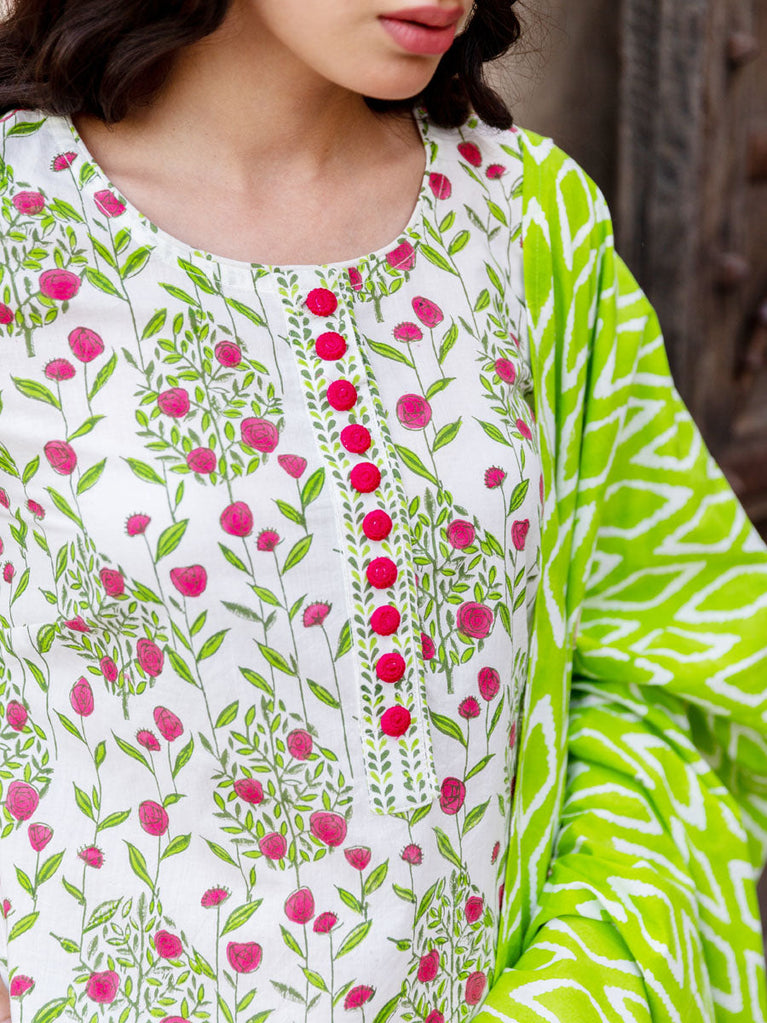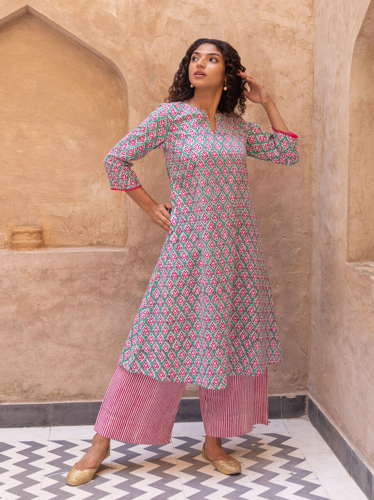 Set of 3 - Gulnaz Cotton Kurta, Palazzo and Dupatta