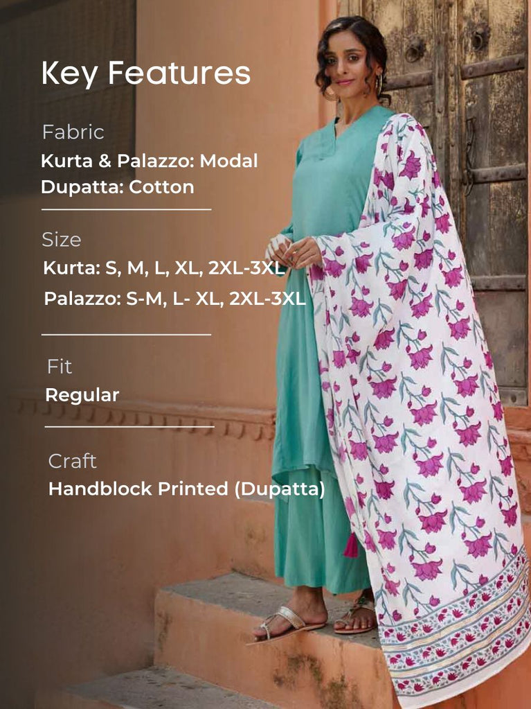 Set of 3 - Uma Modal Kurta, Palazzo and Dupatta