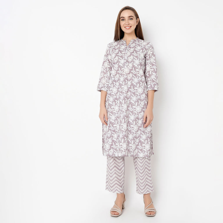Band Neck Knee Length Three-Fourth Sleeve Straight Fit Printed Kurta